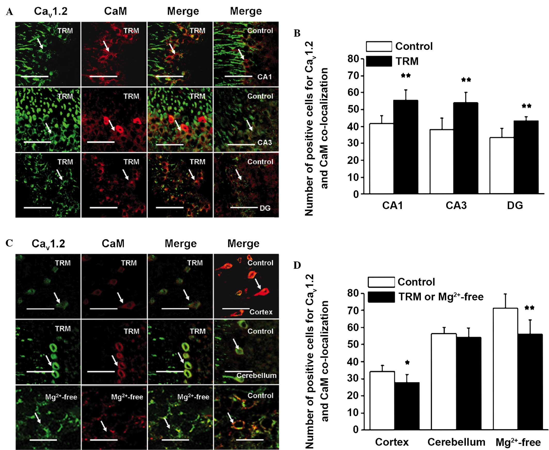 Lv X, Guo F, Xu X, Chen Z, Sun X, Min D, Cao Y, Shi X, Wang L, Chen T, Chen T, et al: Abnormal alterations in the Ca2+/CaV1.2/calmodulin/caMKII signaling pathway in a tremor rat model and in cultured hippocampal neurons exposed to Mg2+-free solution. Mol Med Rep 12: 6663-6671, 2015.