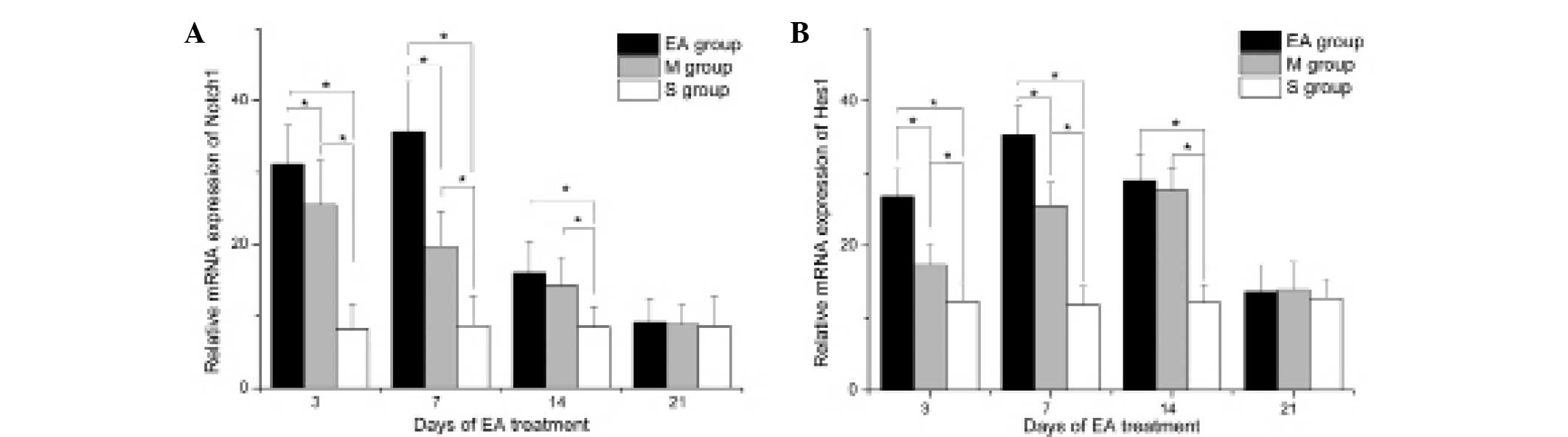 decrease of neuronal and inducible nitric oxide synthases. Acupunct
