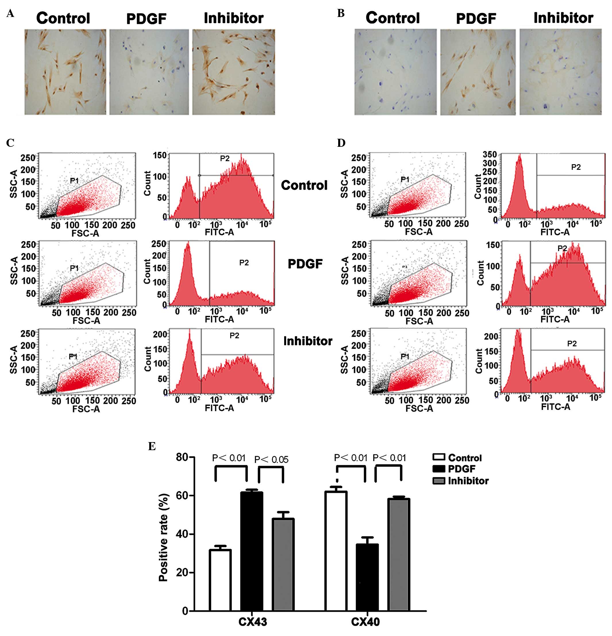 Chadjichristos CE, Morel S, Derouette JP, Sutter E, Roth I, Brisset AC, Bochaton-Piallat ML and Kwak BR: Targeting connexin43 prevents platelet-derived growth factor-BB-induced phenotypic change in porcine coronary artery smooth muscle cells. Circ Res. 102:653–660. 2008. View Article : Google Scholar : PubMed/NCBI | |