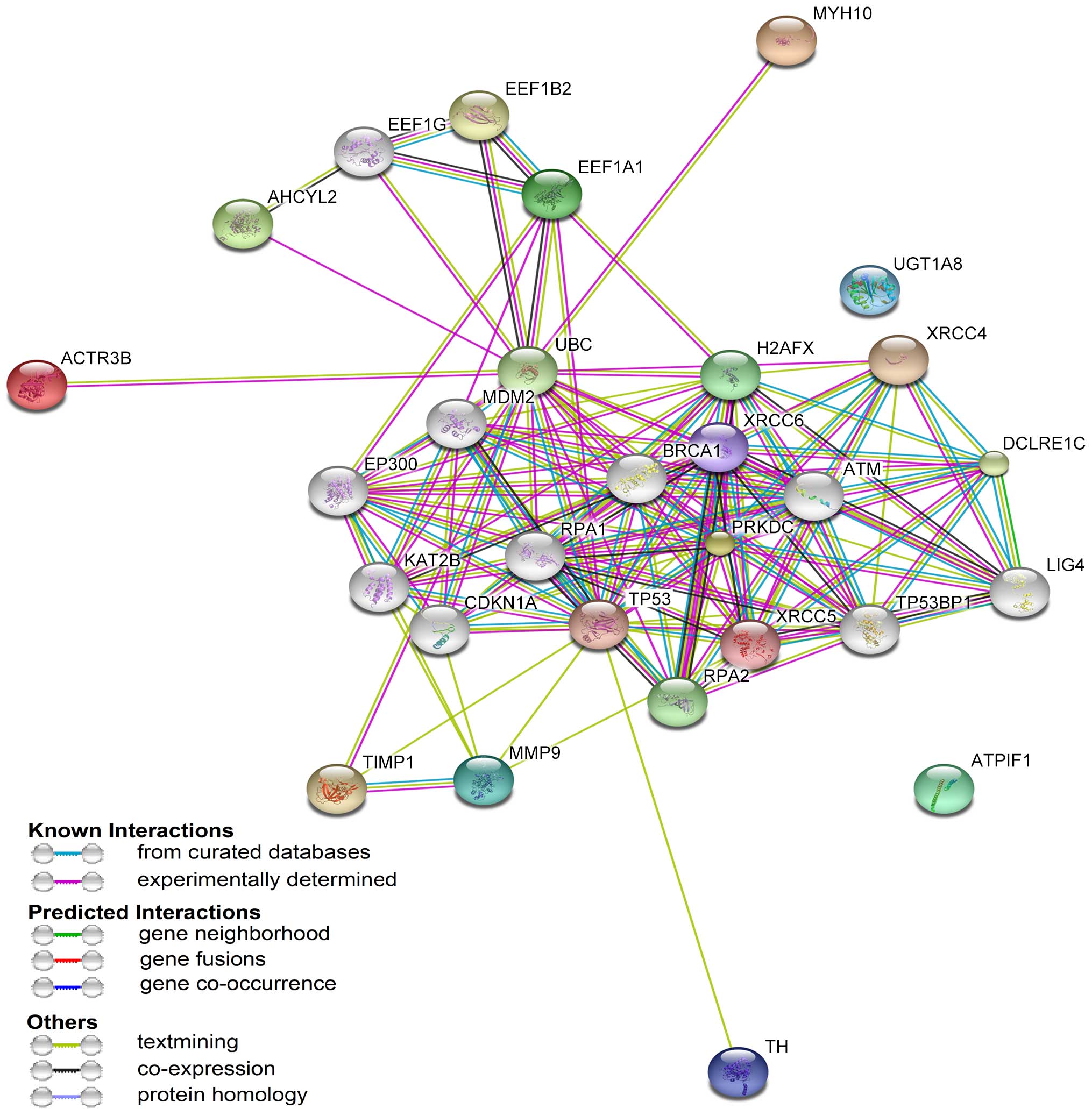 Jensen LJ, Kuhn M, Stark M, Chaffron S, Creevey C, Muller J, Doerks T, Julien P, Roth A, Simonovic M, et al: STRING 8-a global view on proteins and their functional interactions in 630 organisms. Nucleic Acids Res. 37:(Database Issue). D412–D416. 2009. View Article : Google Scholar : PubMed/NCBI | |