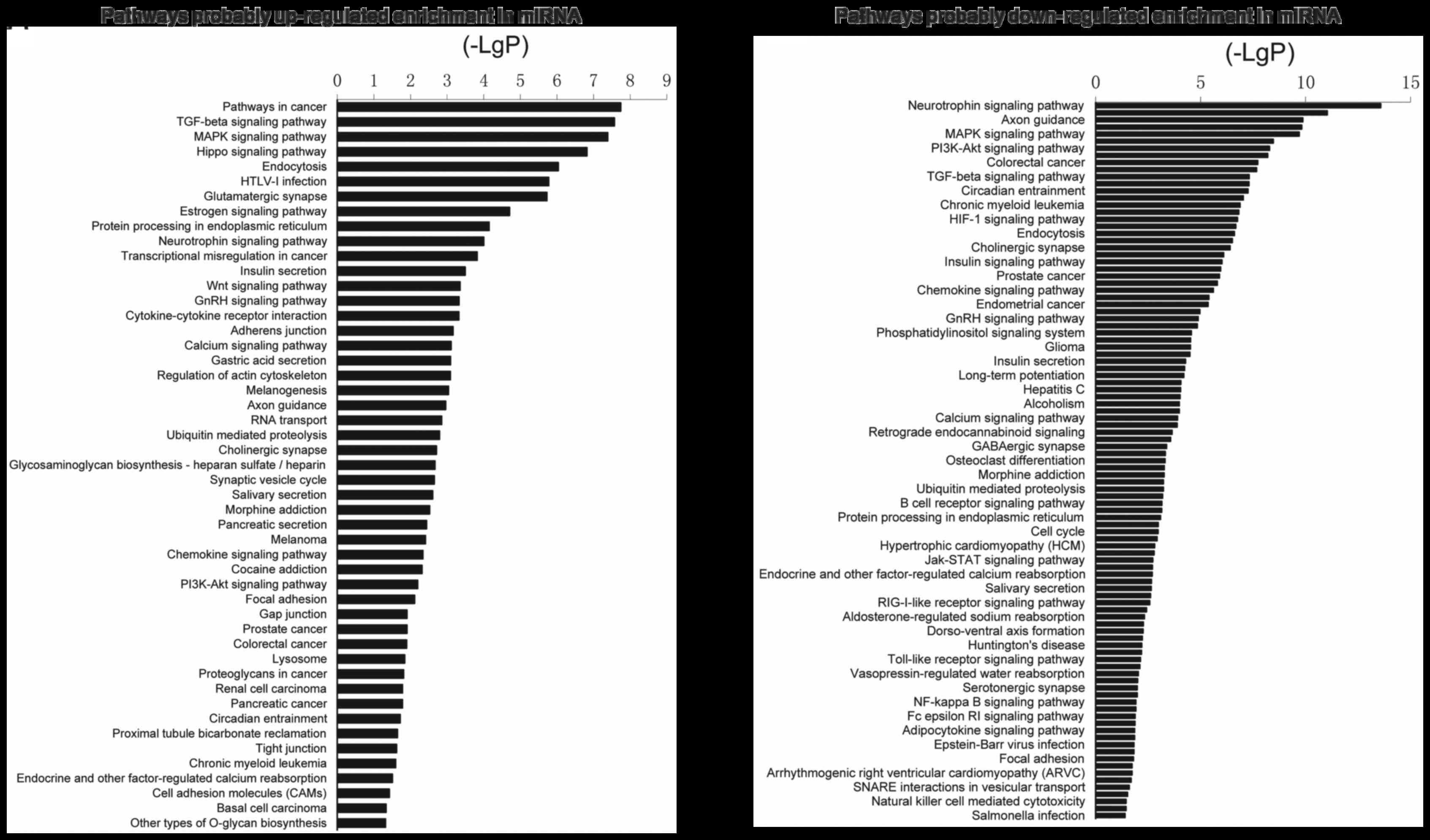 The potential target genes of the above 14 DEMs were then searched by using bioinformatic algorithms such as MiRanda and TargetScan. There are 712 and 929 target genes for up-regulated and down-regulated DEMs, respectively, and listed in Table VII.