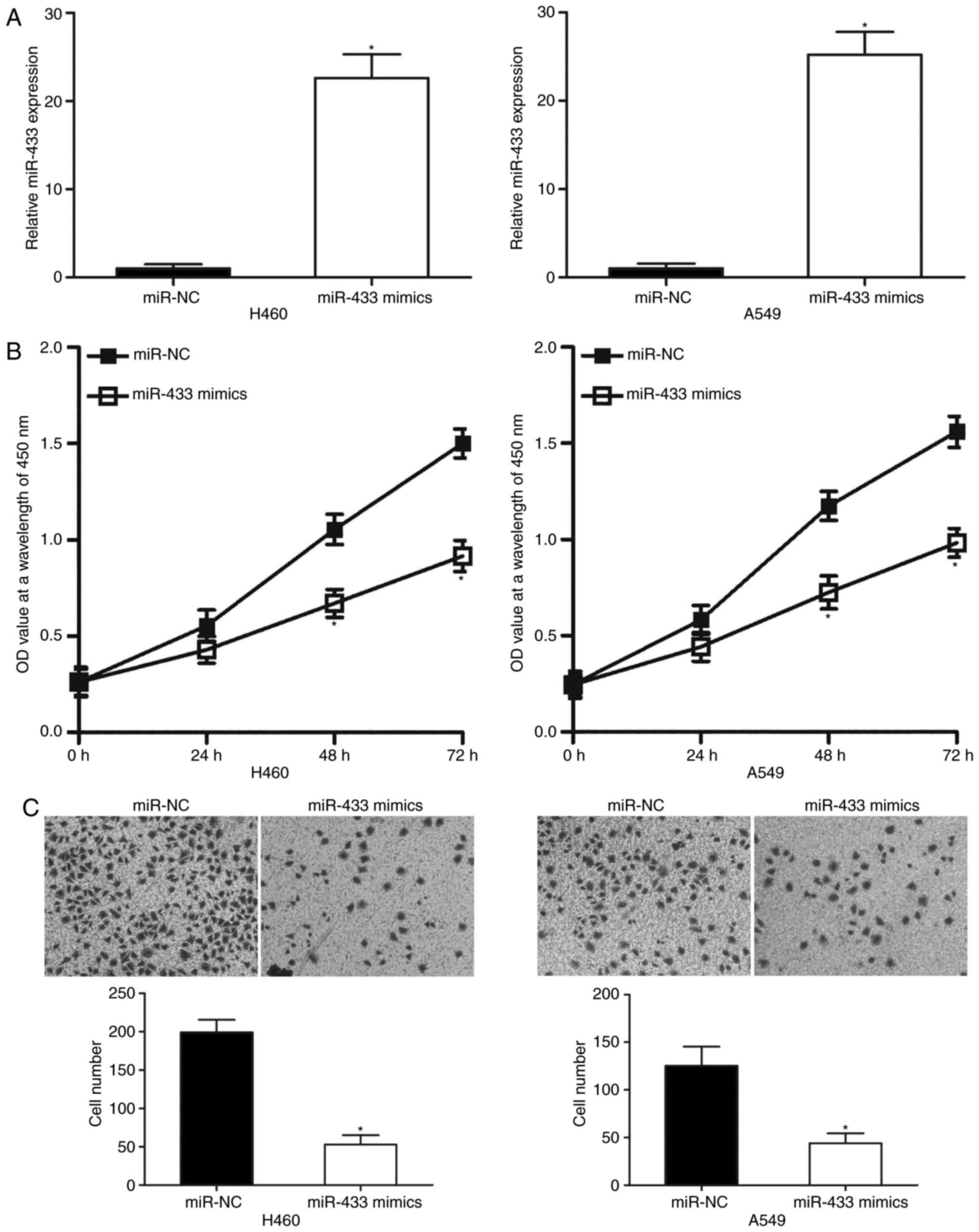 Wang Q and Wang J: MiR-433-3p suppresses cell growth and enhances