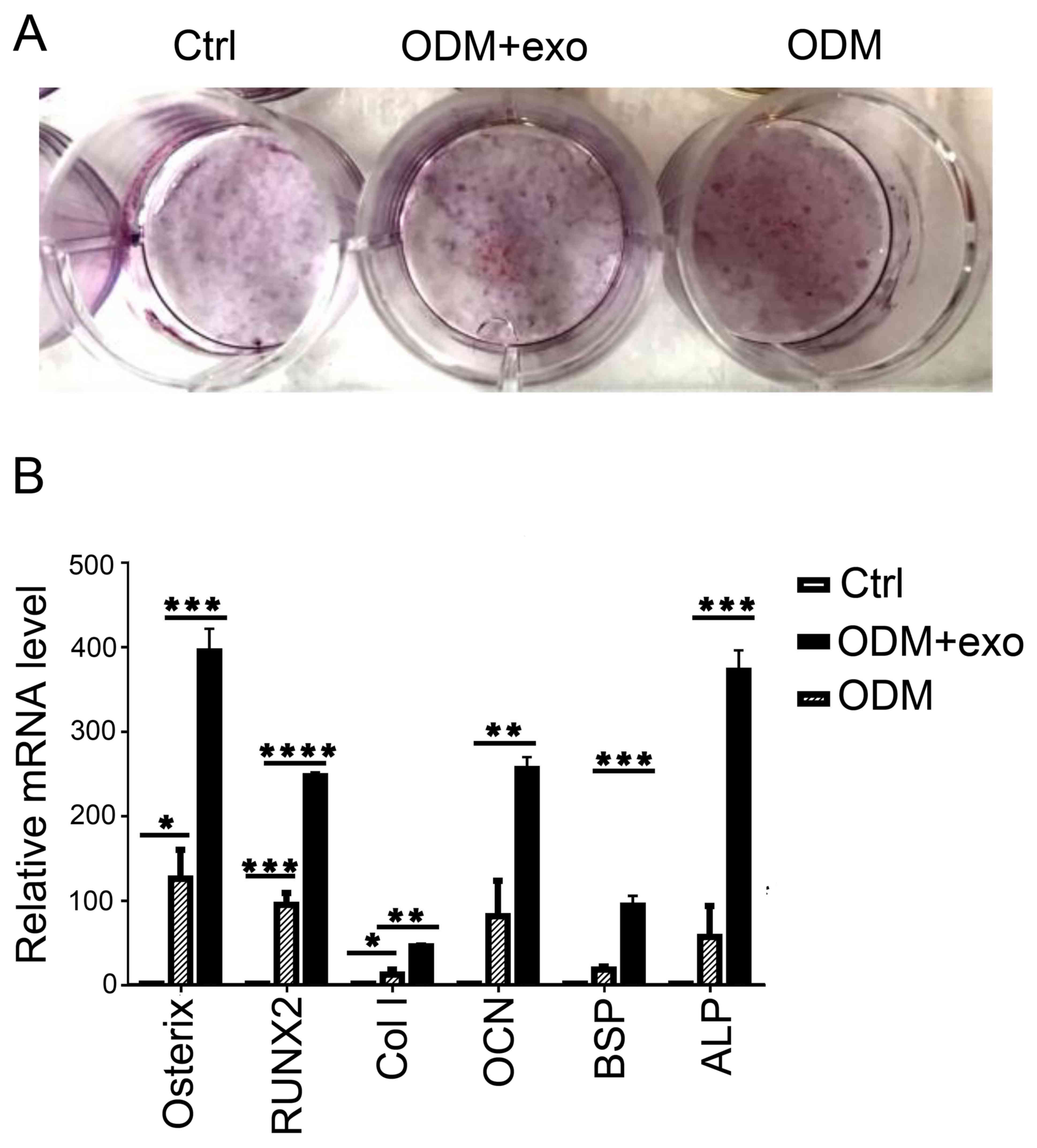 Qin Y, Sun R, Wu C, Wang L and Zhang C: Exosome: A novel approach to stimulate bone regeneration through regulation of osteogenesis and angiogenesis. Int J Mol Sci. 17:E7122016. View Article : Google Scholar : PubMed/NCBI | |