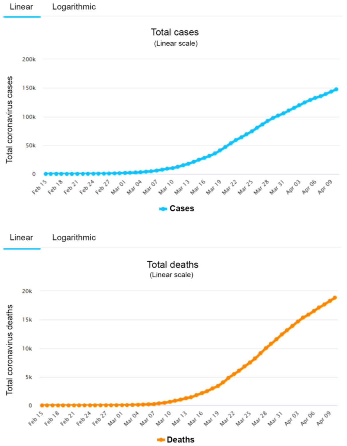 Wordometer, . Confirmed Cases and Deaths by Country, Territory, or Conveyance. https://www.worldometers.info/coronavirus/#countriesUpdated April 15. 2020. | |