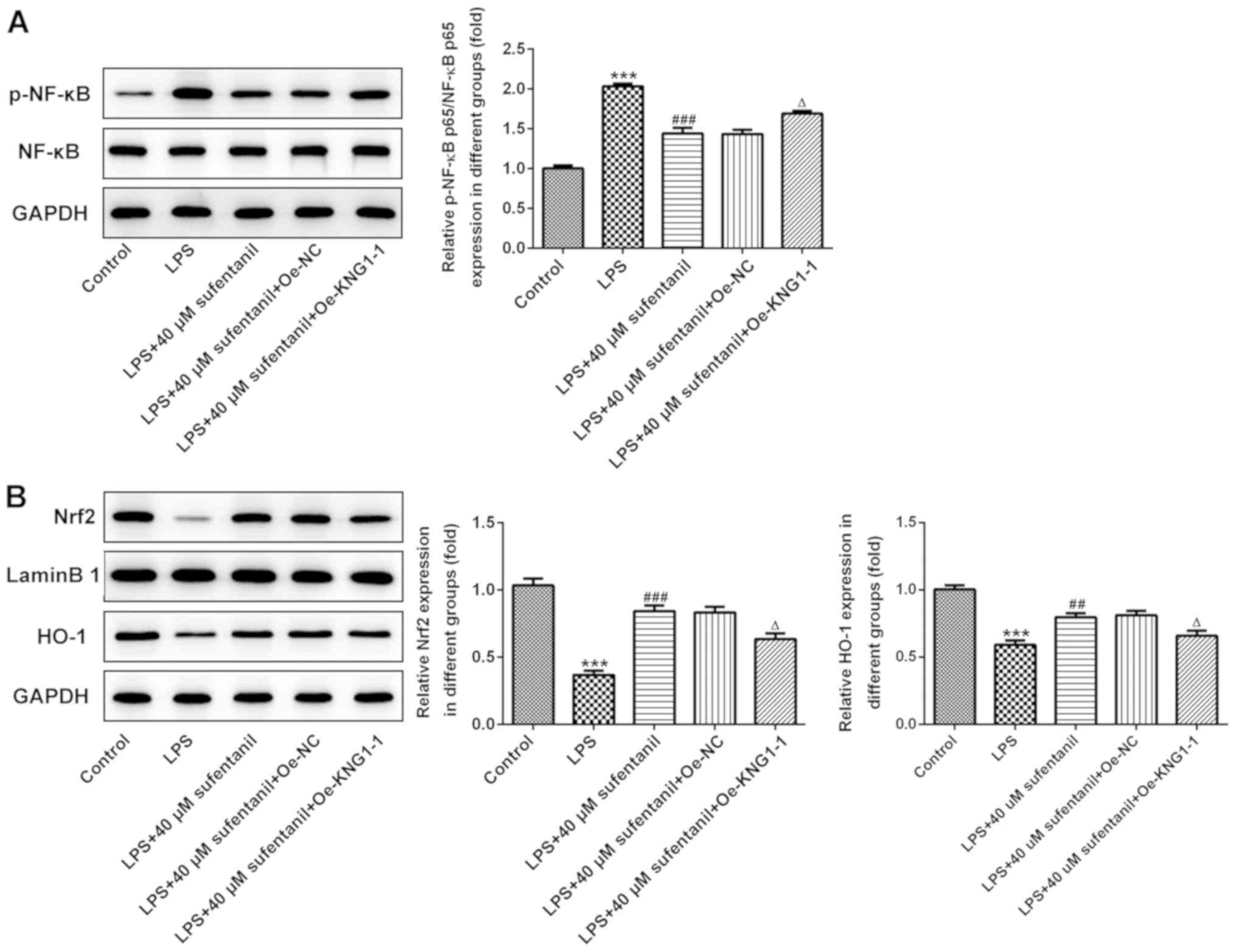Hu Q, Wang Q, Han C and Yang Y: Sufentanil attenuates inflammation and oxidative stress in sepsis-induced acute lung injury by downregulating KNG1 expression. Mol Med Rep 22: 4298-4306, 2020.