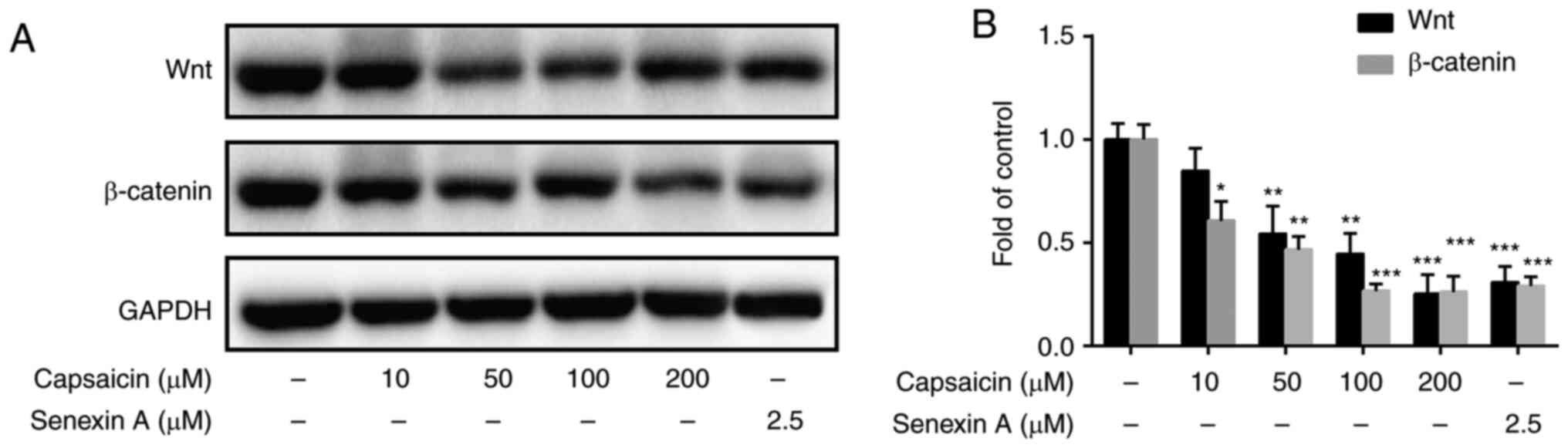 Zhu M, Yu X, Zheng Z, Huang J, Yang X and Shi H: Capsaicin suppressed activity of prostate cancer stem cells by inhibition of Wnt/β-catenin pathway. Phytother Res. 34:817–824. 2020. View Article : Google Scholar : PubMed/NCBI | |