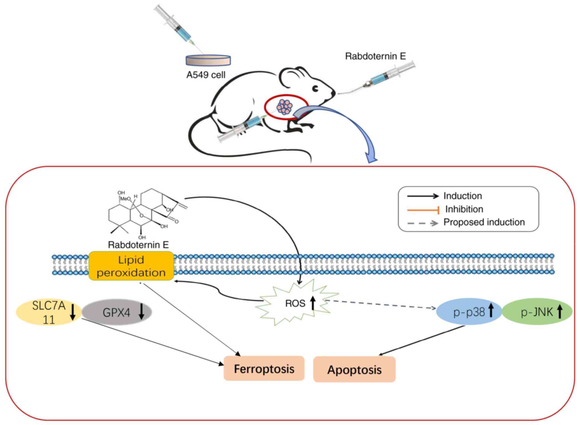 To conclude, in the present study rabdoternin E effectively inhibited A549 cell proliferation in vitro through induction of the apoptosis and ferroptosis pathways.