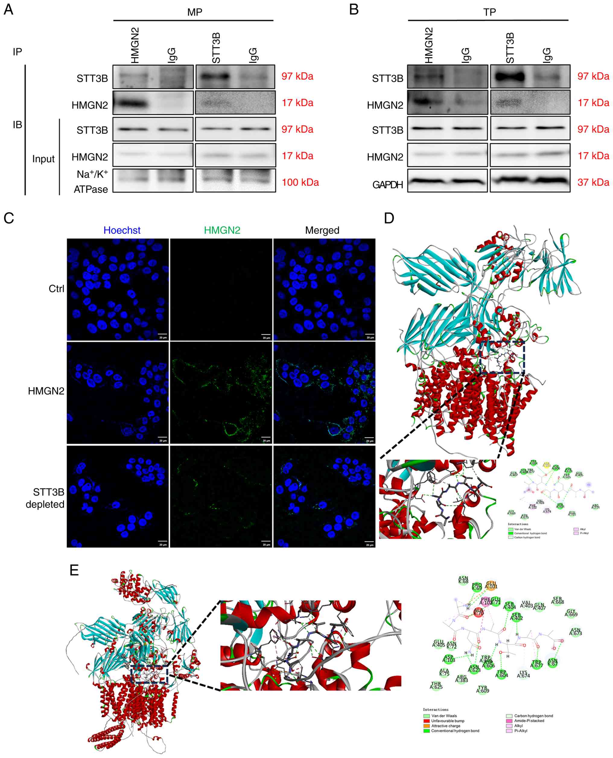 The Protein Data Bank (PDB) format and FASTA sequences of the STT3B protein structural domain were downloaded from the PDB database (https://www.rcsb.org/structure/6S7T). The protein structure of HMGN2 was predicted using Swiss-Model (https://swissmodel.expasy.org/) according to the FASTA sequence obtained from the National Center for Biotechnology Information database (https://www.ncbi.nlm.nih.gov/gene/3151).