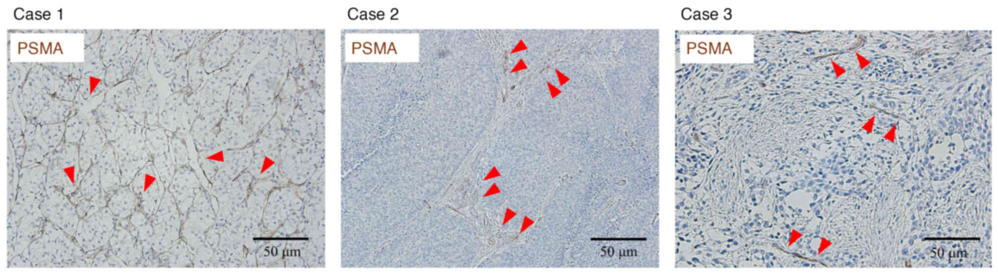 Bychkov A, Vutrapongwatana U, Tepmongkol S and Keelawat S: PSMA expression by microvasculature of thyroid tumors-Potential implications for PSMA theranostics. Sci Rep. 7:52022017. View Article : Google Scholar : PubMed/NCBI | |