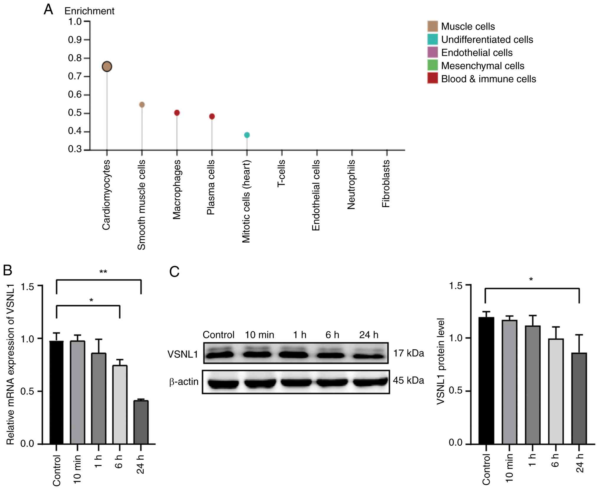 These findings suggested that hypoxia markedly downregulated VSNL1 expression in cardiomyocytes, potentially indicating its involvement in the pathophysiology of hypoxia-induced cardiac injury.