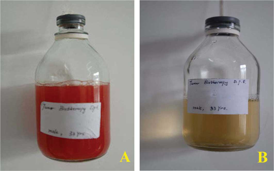 To alleviate pleural effusion and dyspnea, the patient was treated with a mCIK cell intrapleural infusion. Mononuclear cells were obtained aseptically from blood and infused back to the patient through intrapleural infusion, following in vitro culture of the mCIK cells.