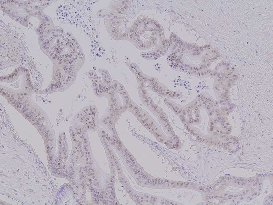 Between January 2005 and December 2010, 34 pancreatic ductal adenocarcinoma patients (21 males and 13 females) underwent surgery at the Department of Gastroenterologic Surgery, Kanazawa University Hospital (Kanazawa, Japan). Among them, 13 patients received preoperative chemotherapy with gemcitabine (NAC group). During the same period, 21 patients did not receive preoperative chemotherapy but underwent surgery (control group). Written informed consent was obtained from all 34 patients prior to their enrollment in the study, and the treatment was undertaken with the approval of the local medical ethics committee.