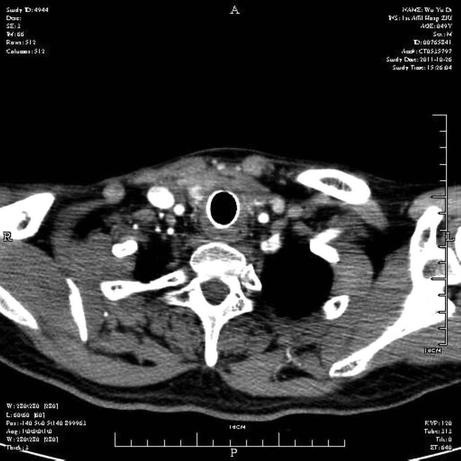 Yang, R., Yu, X., Ma, L., & Wu, F. (2012). Emergency management of a patient with severe airway obstruction resulting from poorly differentiated thyroid carcinoma: A case report. Oncology Letters, 4, 771-774. https://doi.org/10.3892/ol.2012.827