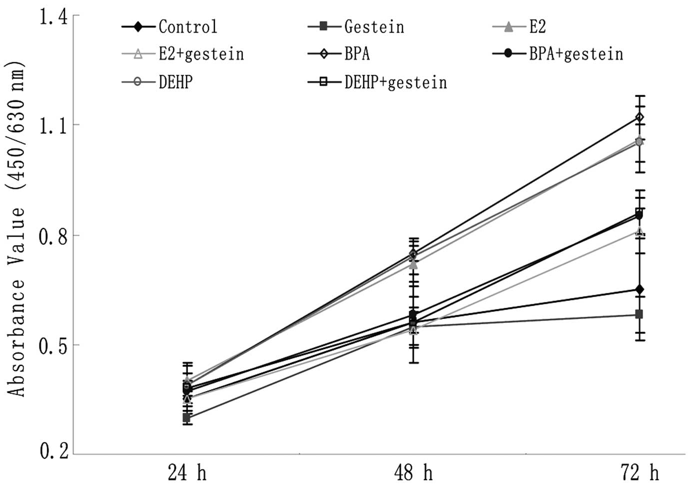 Zheng J, Xiao X, Liu J, Zheng S, Yin Q and Yu Y: Growth-promoting effect of environmental endocrine disruptors on human neuroblastoma SK-N-SH cells. Environ Toxicol Pharmacol. 24:189–193. 2007. View Article : Google Scholar : PubMed/NCBI