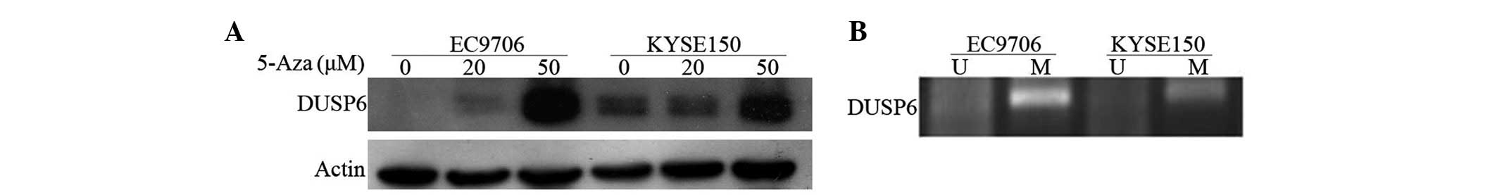 Down-regulation of DUSP6 expression in lung cancer: its mechanism