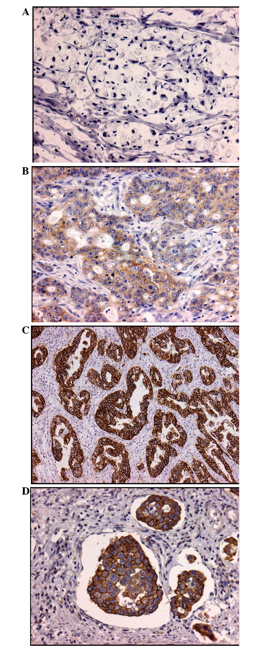 Hofmann M, Stoss O, Shi D, et al: Assessment of a HER2 scoring system for gastric cancer: results from a validation study. Histopathology. 52:797–805. 2008. View Article : Google Scholar : PubMed/NCBI