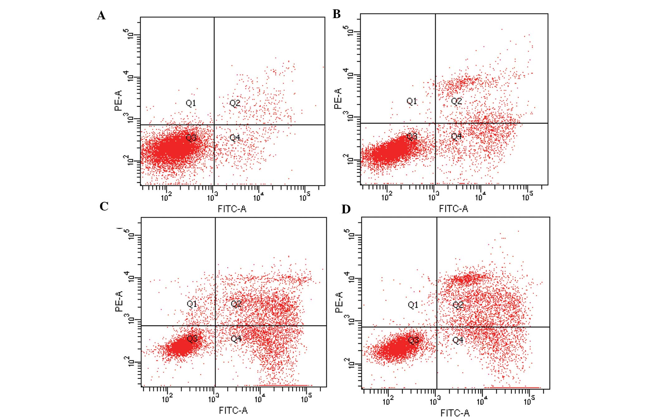 The Annexin V-fluorescein isothiocyanate (FITC)/propidium iodide (PI) kit was obtained from Beijing MultiSciences Biotech Co., Ltd (Beijing, China) and the Hoechst staining kit was obtained from the Beyotime Institute of Biotechnology (Shanghai, China).