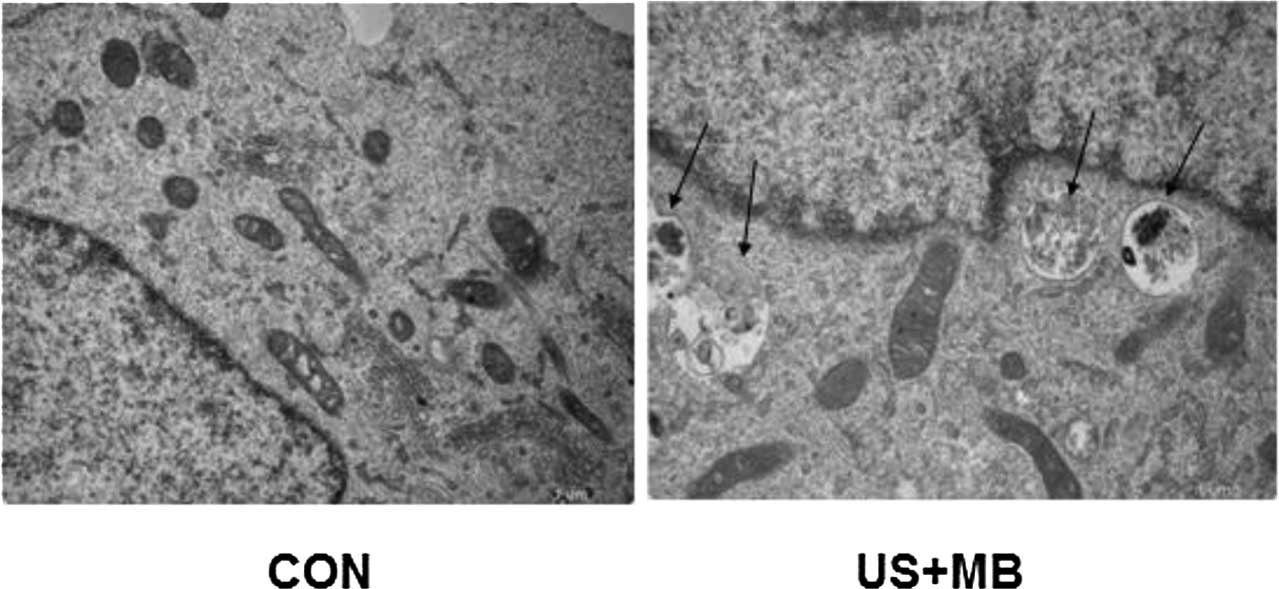 of PC-3 cells with ultrasound combined with microbubbles induces