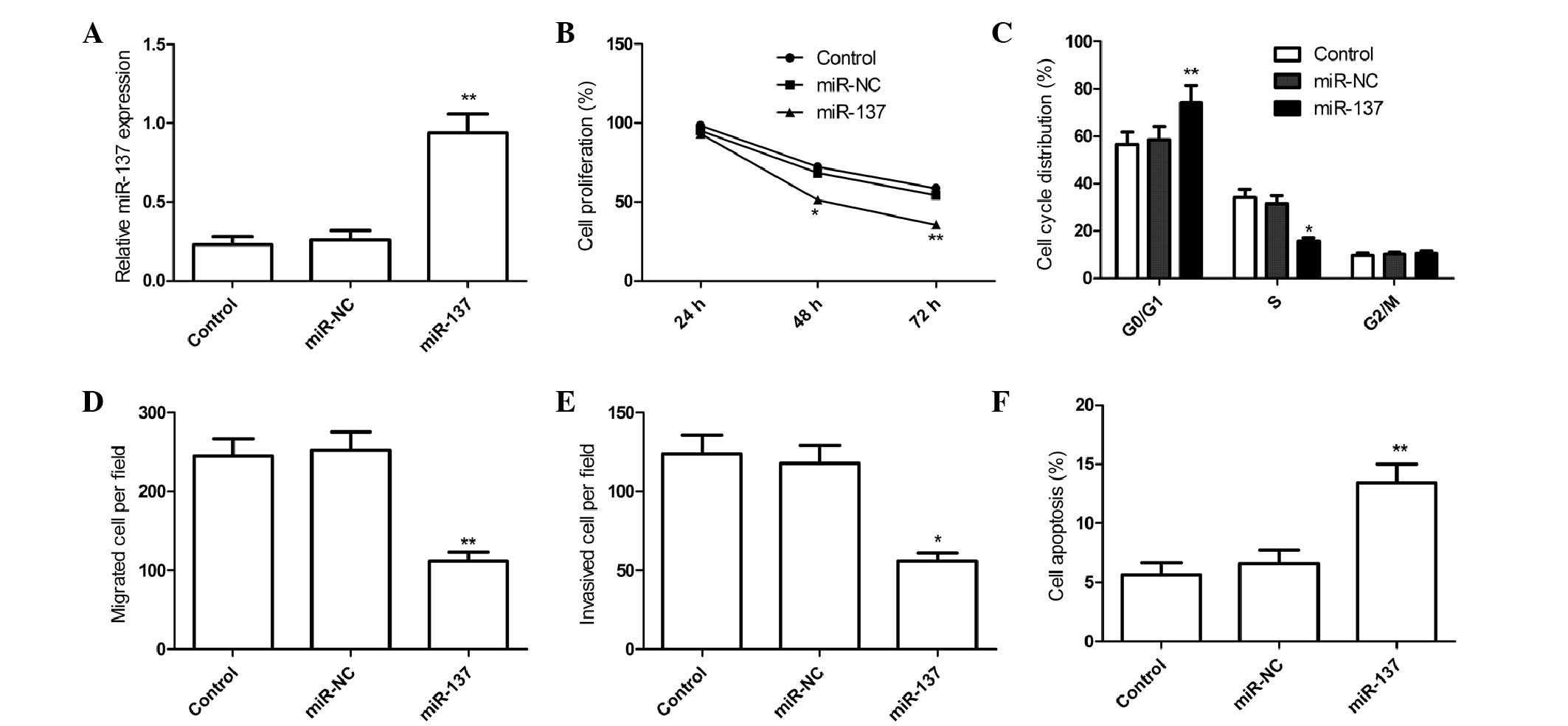and Xu W: miR-137 inhibits the proliferation of lung cancer cells