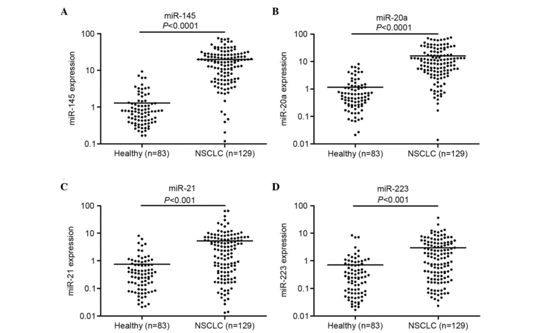 miR-126, miR-143, miR-145, and miR-652 in malignant pleural