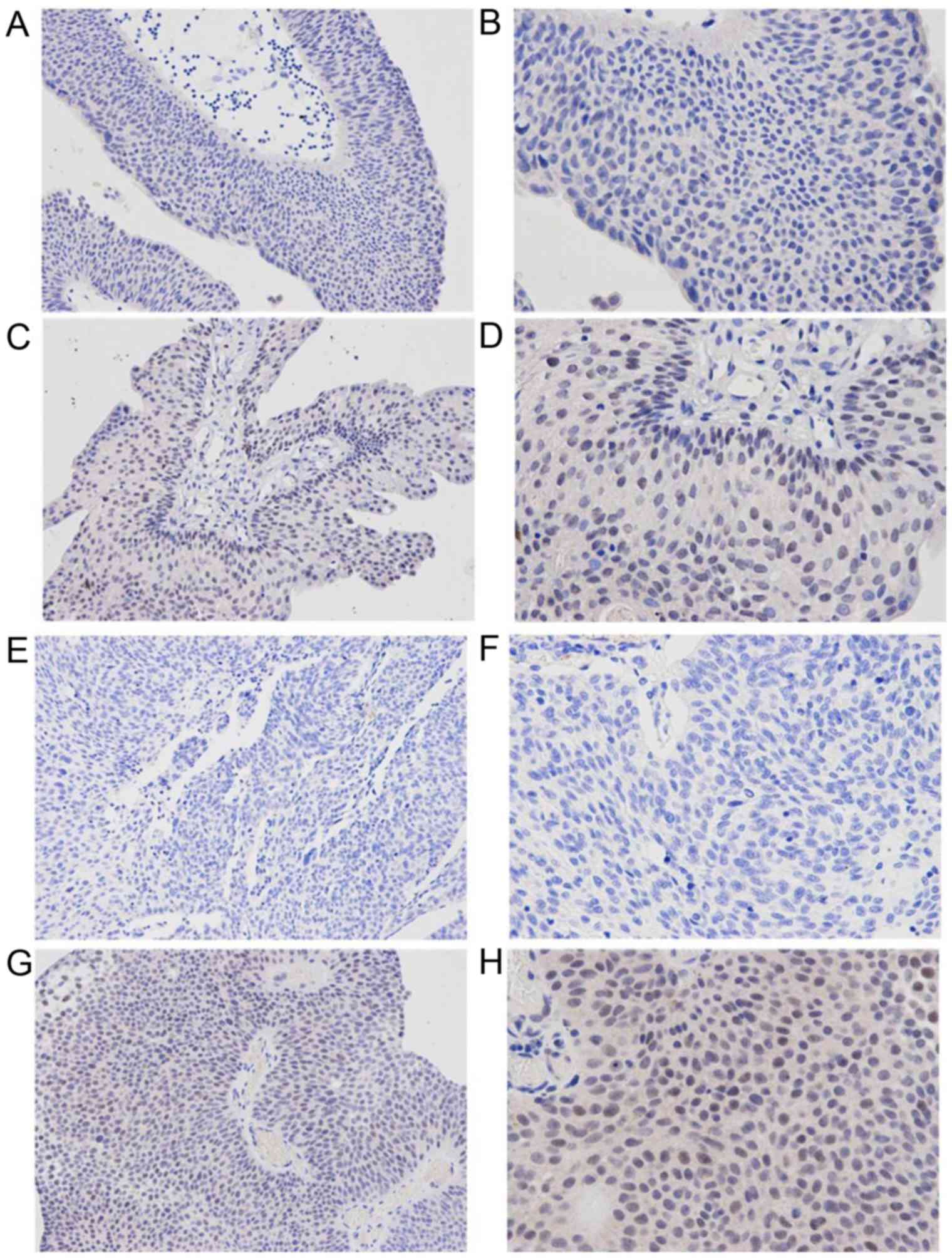 Eifler JB, Scarpato KR and Clark PE: Management of noninvasive bladder cancers. Curr Opin Oncol. 27:185–190. 2015. View Article : Google Scholar : PubMed/NCBI | |