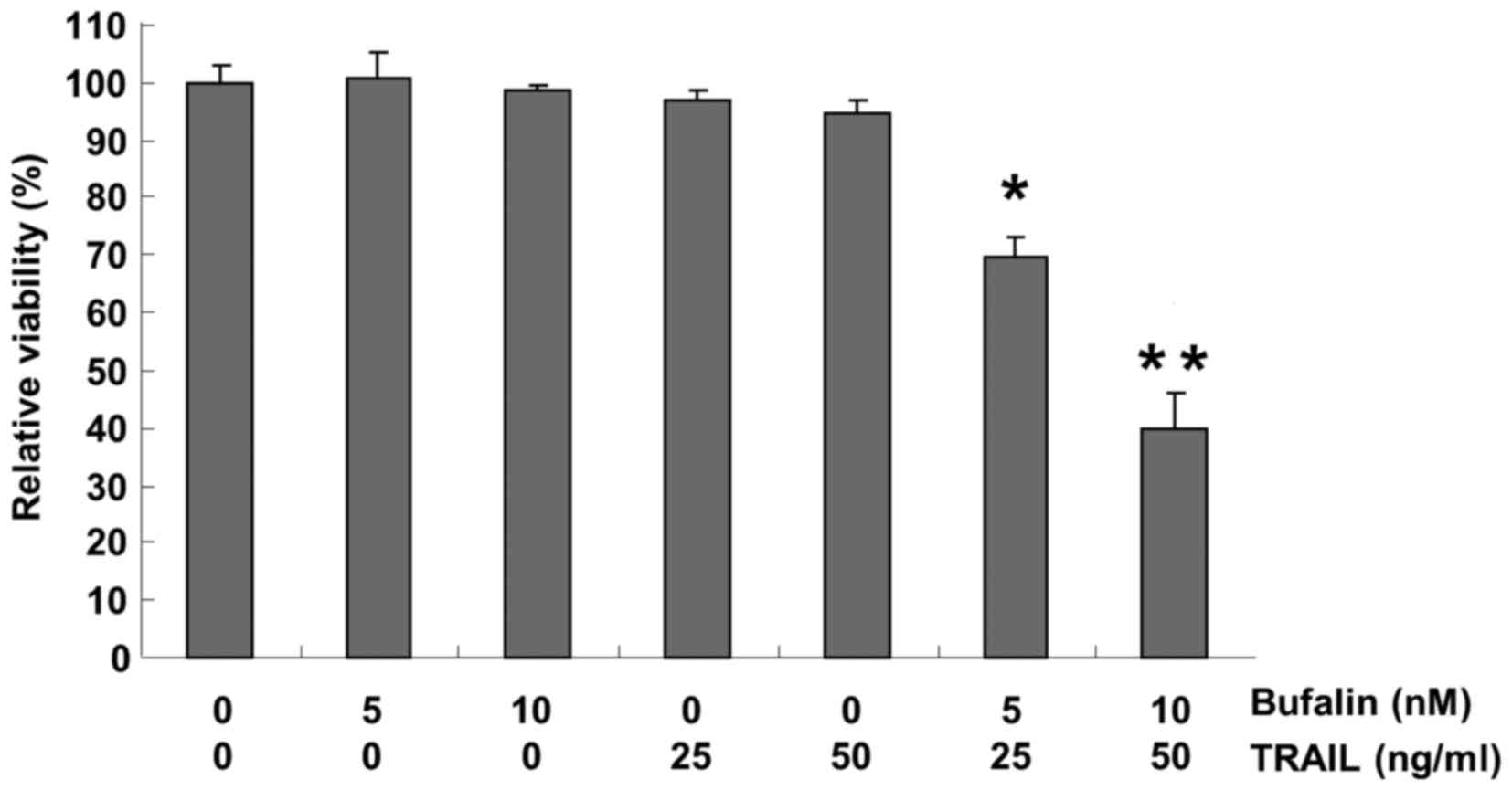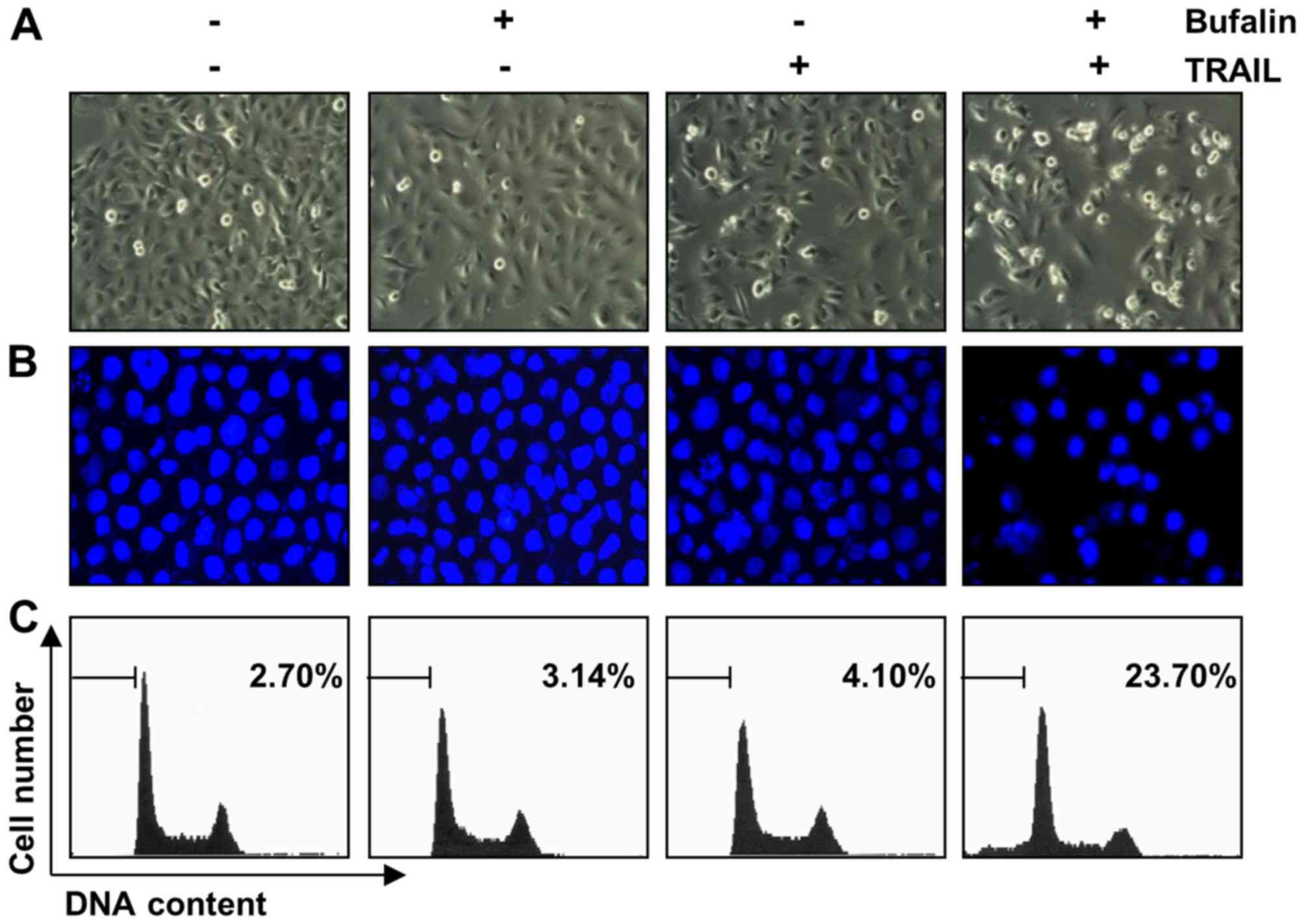 Bufalin sensitizes human bladder carcinoma cells to TRAIL-mediated apoptosis