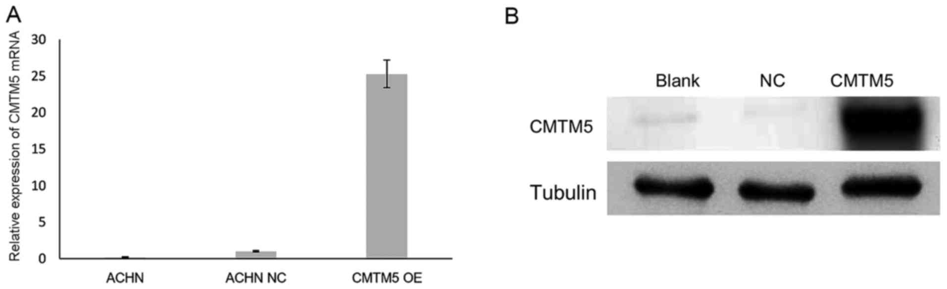 Y, Zhang Y, Ng KM, Han W, Ma D and Tao Q: Cmtm5 exhibits tumor