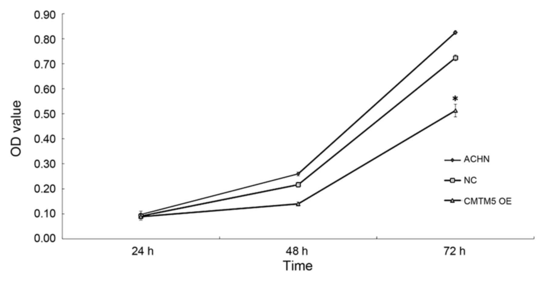 Wang X, Li H, Xing X, Cheng X, et al: CMTM3 inhibits cell migration