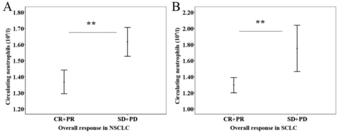 Sun H, Hu P, Du J and Wang X: Predictive value of inflammatory indexes on the chemotherapeutic response in patients with unresectable lung cancer: A retrospective study. Oncol Lett 15: 4017-4025, 2018.