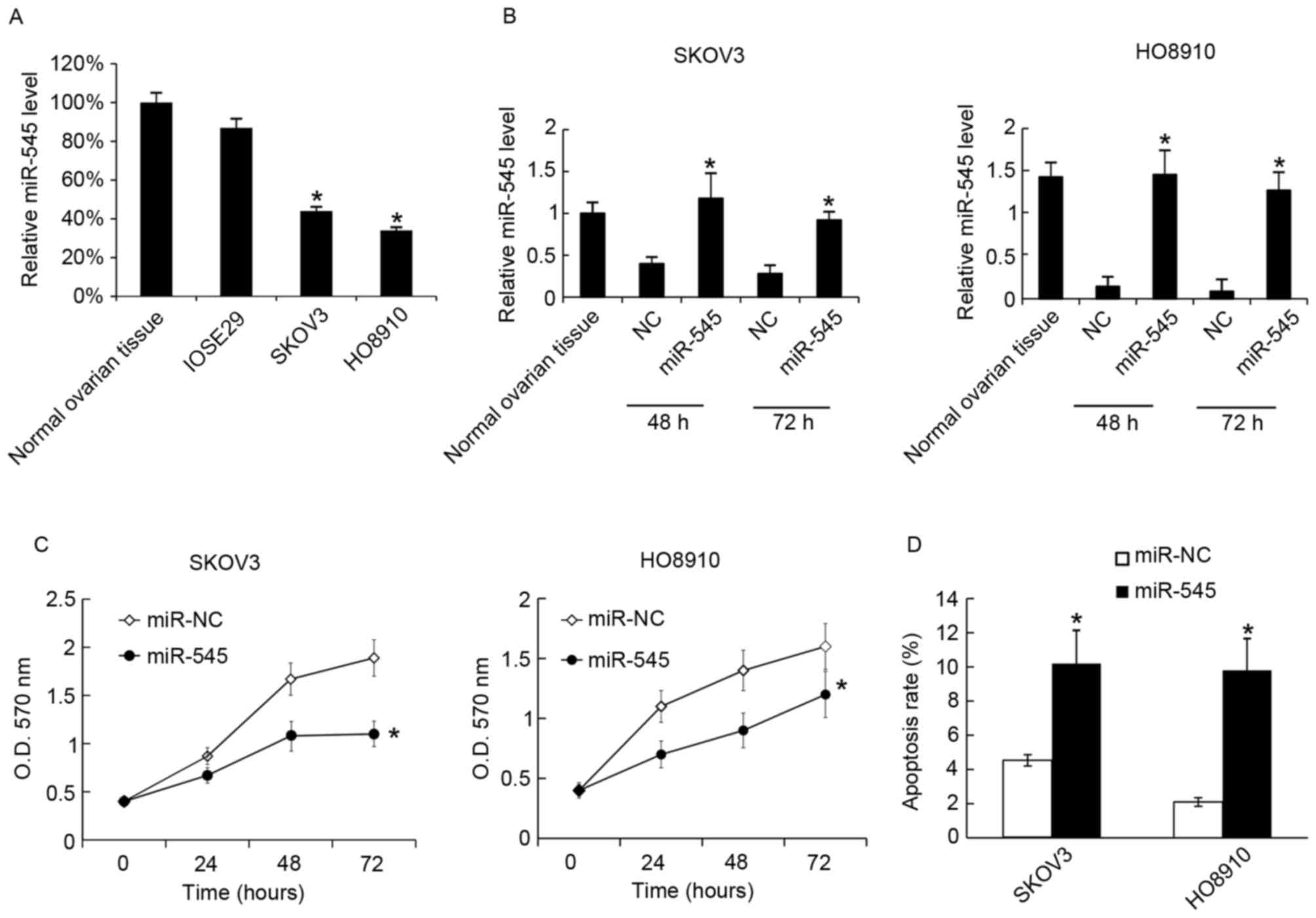 In conclusion, the data collected in the present study demonstrated that miR-545 may serve an antitumor function in EOC.