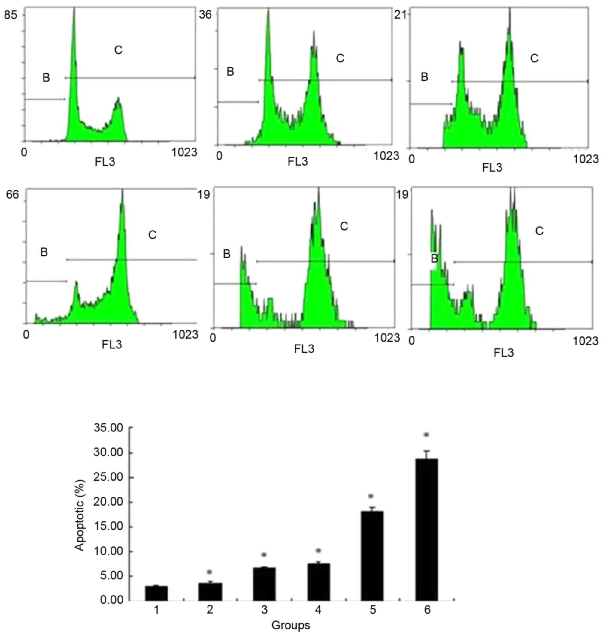 Chen A, Yu J, Zhang L, Sun Y, Zhang Y, Guo H, Zhou Y, Mitchelson K and Cheng J: Microarray and biochemical analysis of bufalin-induced apoptosis of HL-60 cells. Biotechnol Lett. 31:487–494. 2009. View Article : Google Scholar : PubMed/NCBI