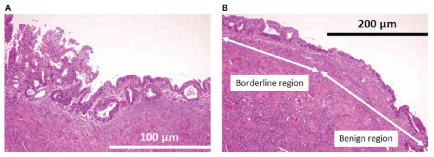 Bell KA and Kurman RJ: A clinicopathologic analysis of atypical proliferative (borderline) tumors and well-differentiated endometrioid adenocarcinomas of the ovary. Am J Surg Pathol. 24:1465–1479. 2000. View Article : Google Scholar : PubMed/NCBI | |