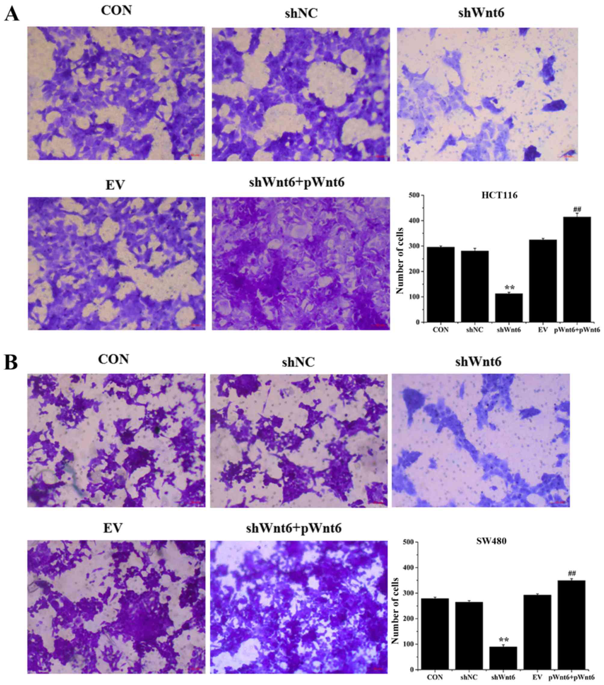Zheng , X., Yu, H."Wnt6 contributes tumorigenesis and development of colon cancer via its effects on cell proliferation, apoptosis, cell‑cycle and migration". Oncology Letters 16.1 (2018): 1163-1172.