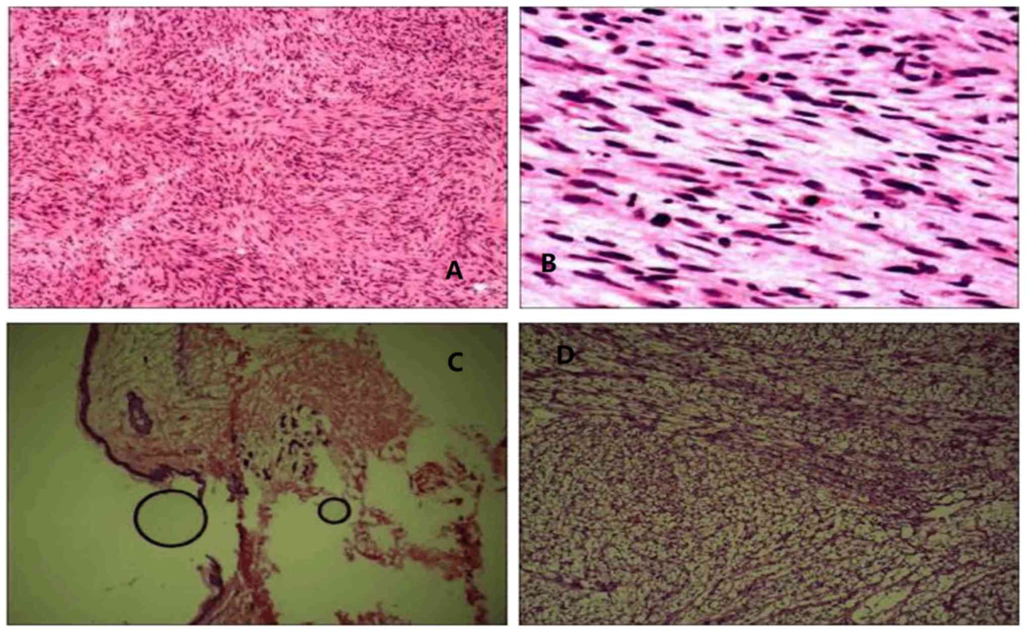 Al-Rahbi S, Al-Lawati T, Al-Kharusi S, Thomas S and Al-Harrasi K: Dermatofibrosarcoma Protuberans: A rare malignancy of the breast. Oman Med J. 30:378–381. 2015. View Article : Google Scholar : PubMed/NCBI | |