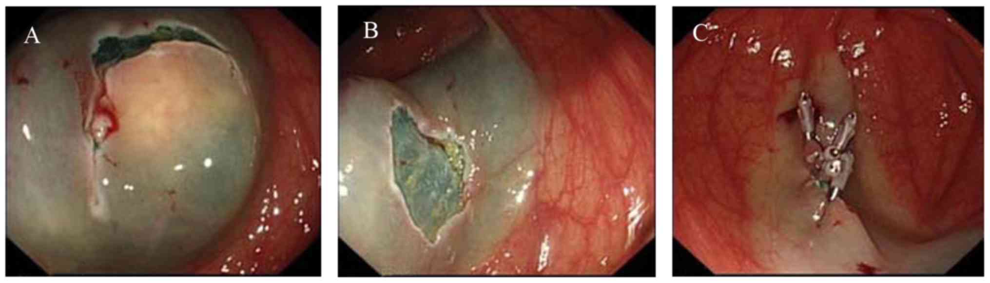 Ma MX and Bourke MJ: Complications of endoscopic polypectomy, endoscopic mucosal resection and endoscopic submucosal dissection in the colon. Best Pract Res Clin Gastroenterol. 30:749–767. 2016. View Article : Google Scholar : PubMed/NCBI | |