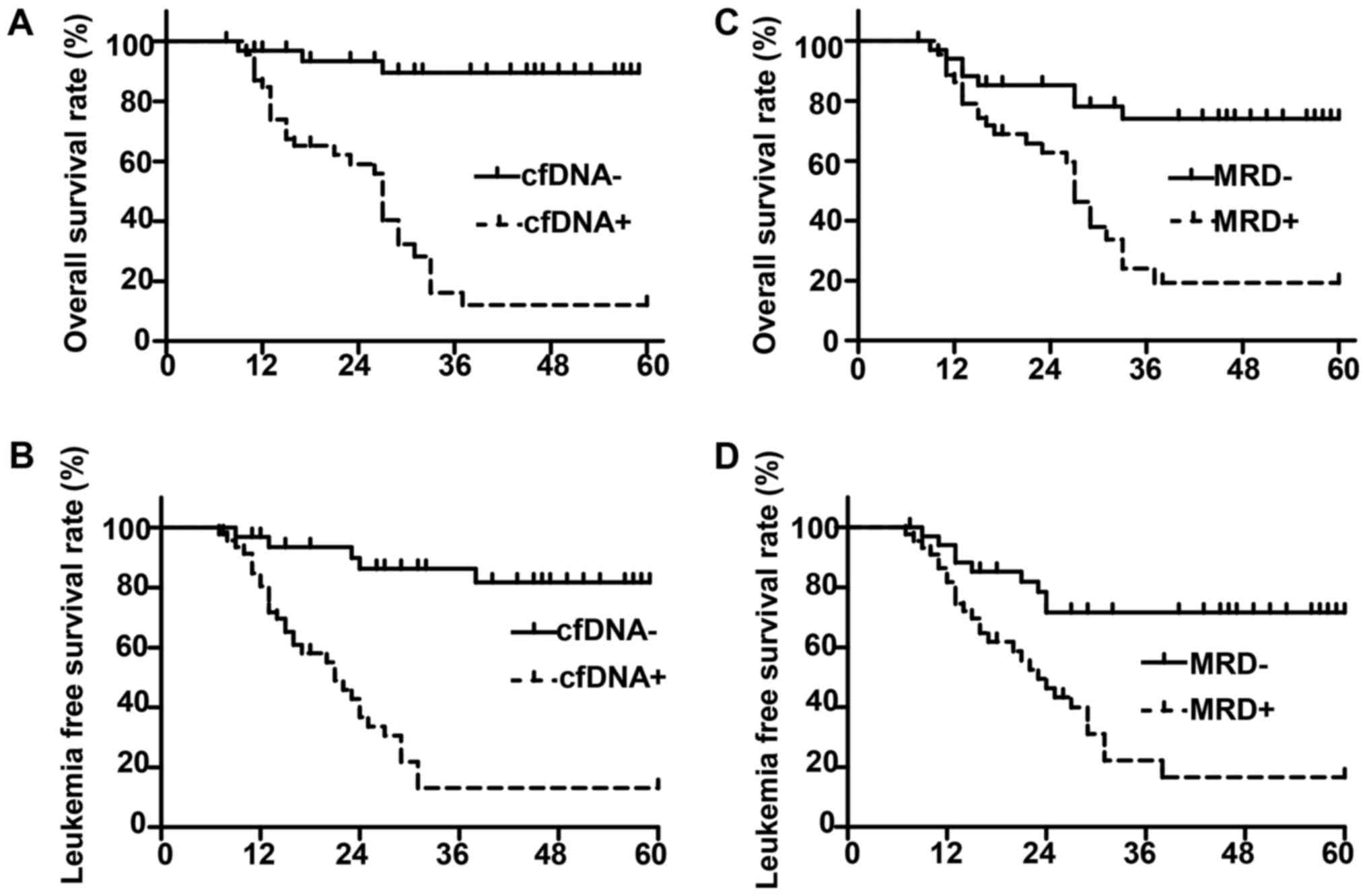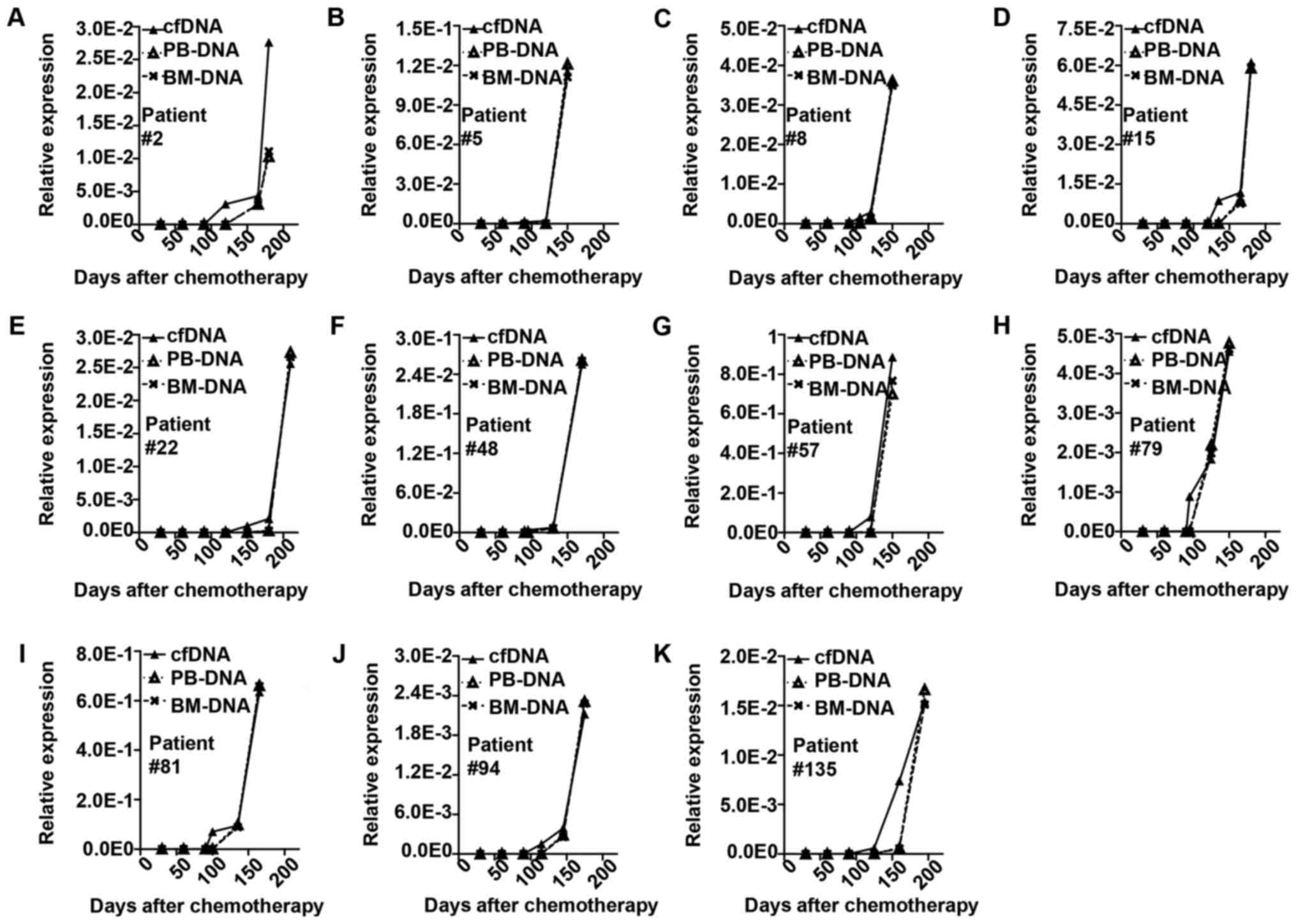 Zhong L, Chen J, Huang X, Li Y and Jiang T: Monitoring immunoglobulin heavy chain and T‑cell receptor gene rearrangement in cfDNA as minimal residual disease detection for patients with acute myeloid leukemia. Oncol Lett 16: 2279-2288, 2018.