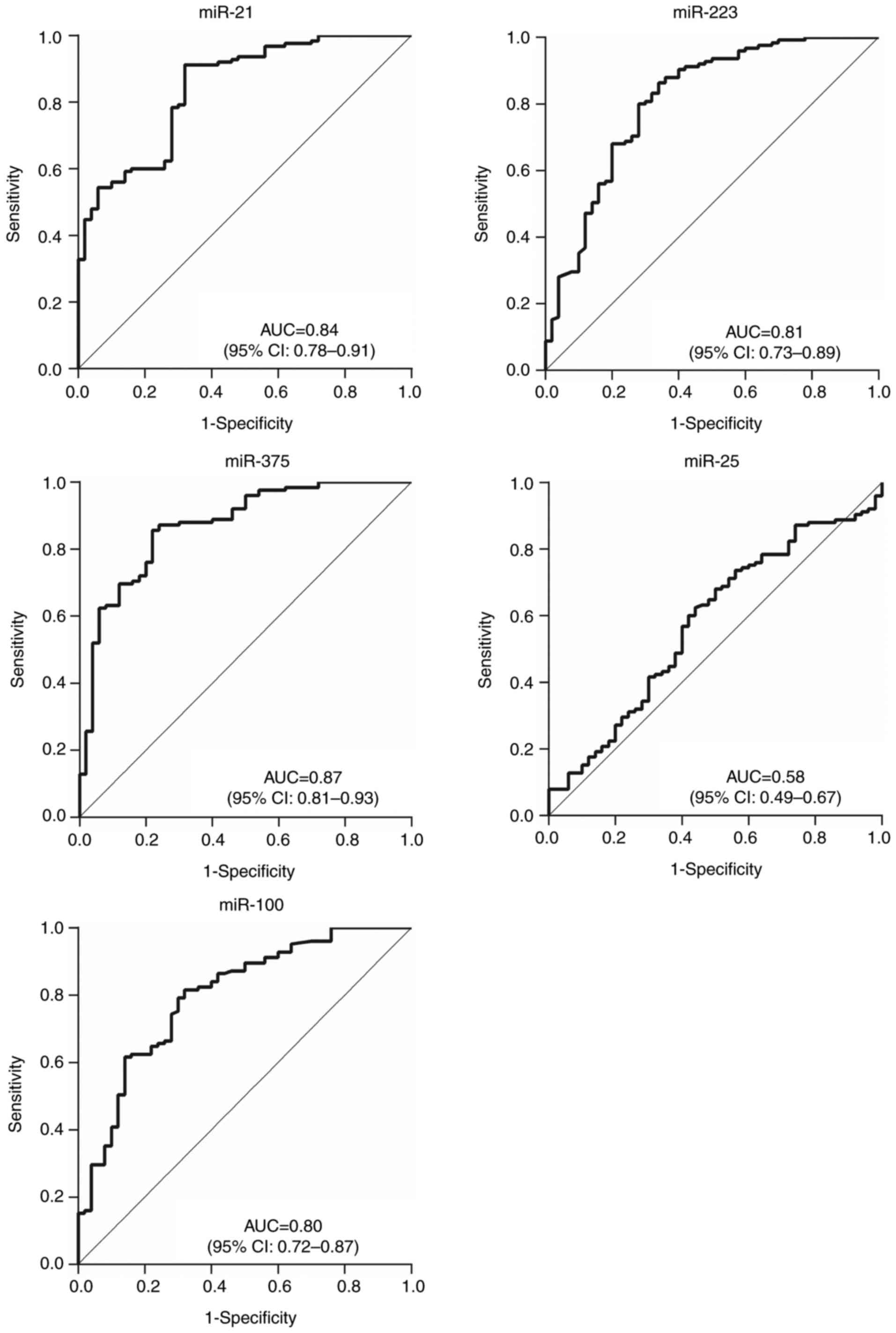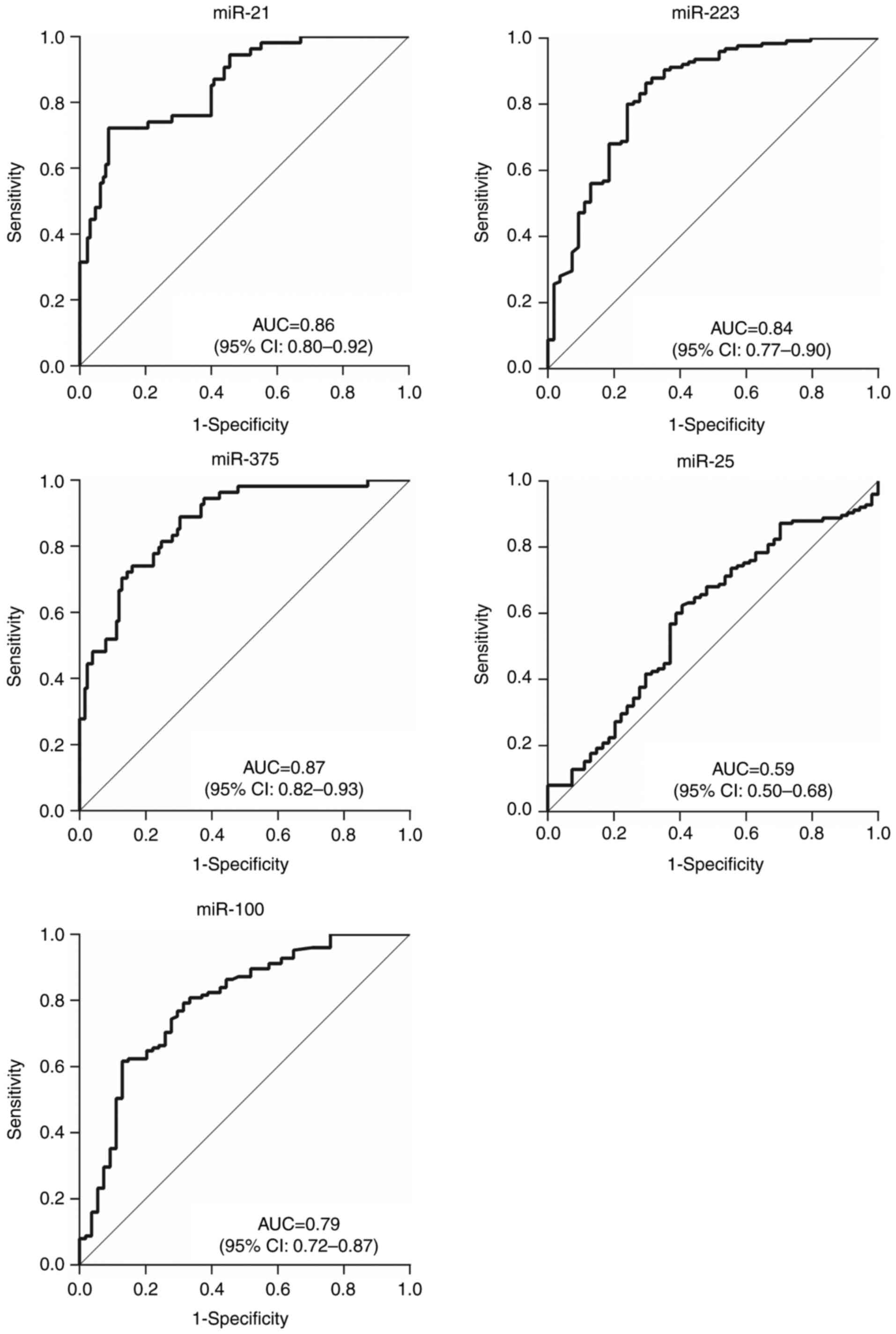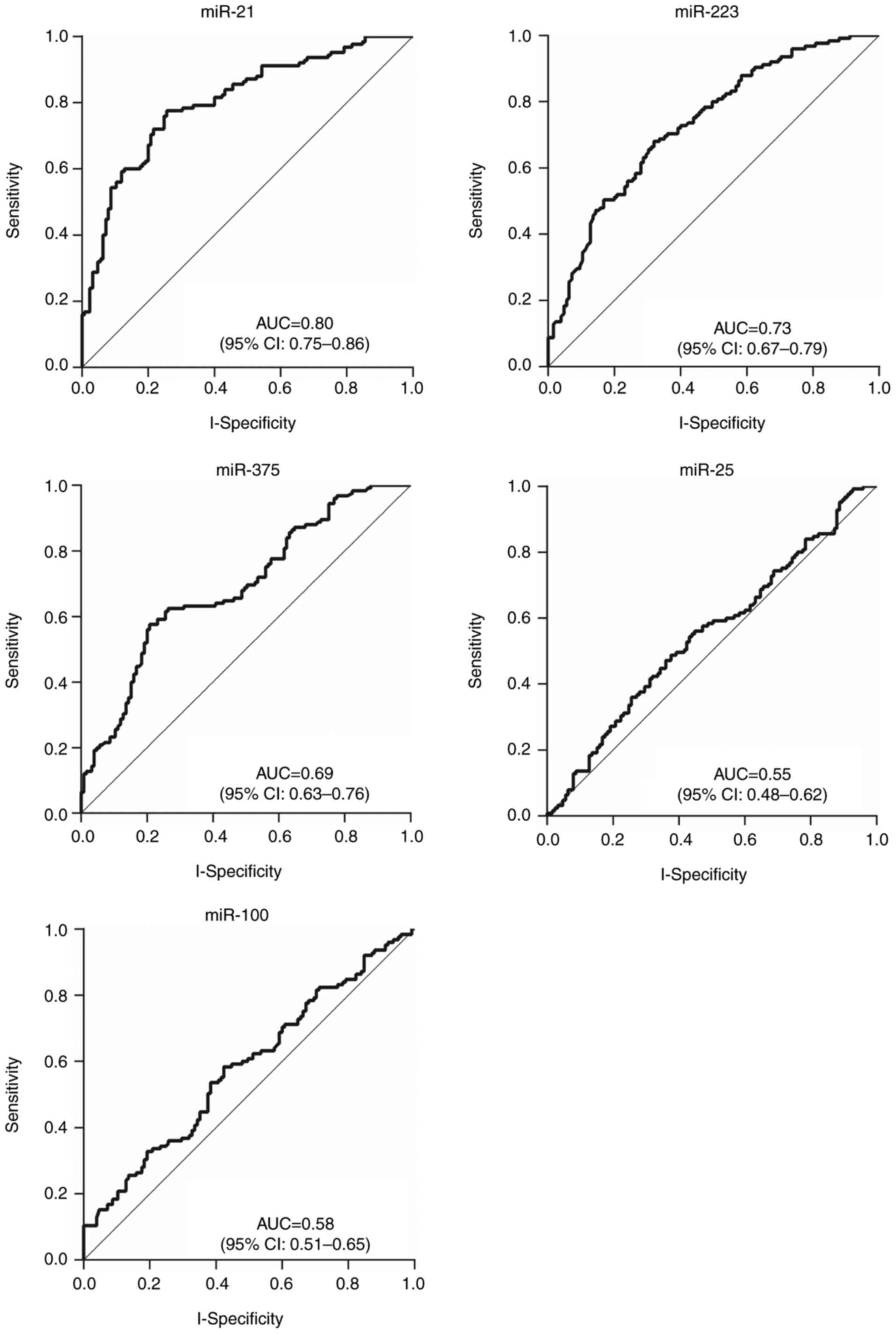 Fujiwara H, et al: Prognostic impact of circulating miR-21 and