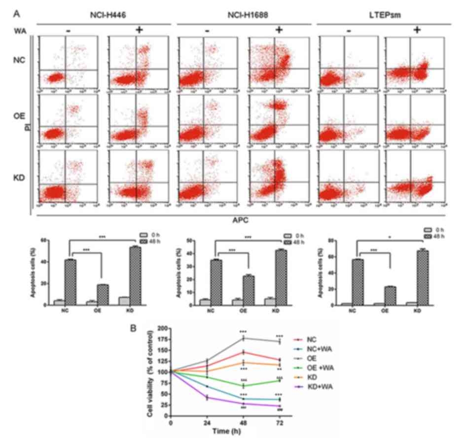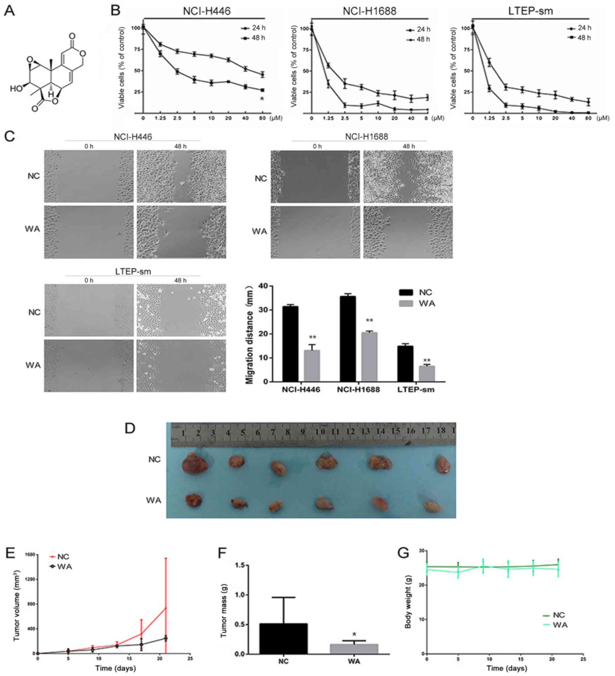 SCLC is characterized by rapid growth and early metastasis, which indicates strikingly high malignity and metastatic potential (1). The therapeutic potential of WA in SCLC treatment was highlighted (9).
