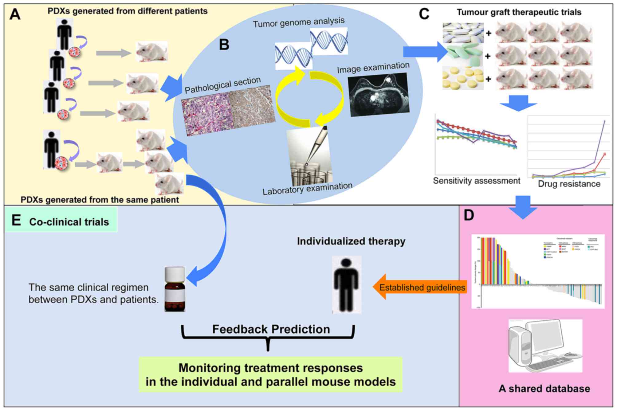 In addition, studies on targeted drug treatments confirm the accurate predictive value, fidelity and stability of PDXs and PDX-associated clinical prognosis (Fig. 1A, B and C).