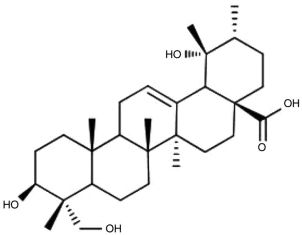 Lee TH, Juang SH, Hsu FL and Wu CY: Triterpene acids from the leaves of planchonella duclitan (Blanco) bakhuizan. J Chin Chem Soc. 52:1275–1280. 2005. View Article : Google Scholar