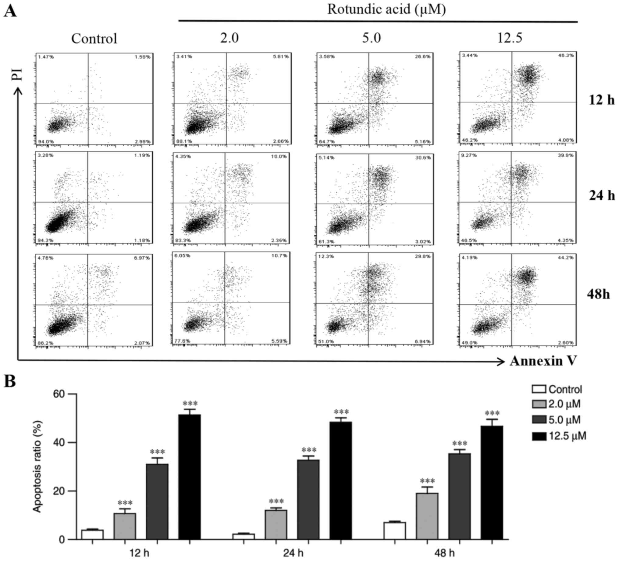Nan, M., Wang, X., Li, H., Yu, D., Sun, W., Xu, H., He, Y., Zhao, Q."Rotundic acid induces Cas3‑MCF‑7 cell apoptosis through the p53 pathway". Oncology Letters 17.1 (2019): 630-637.