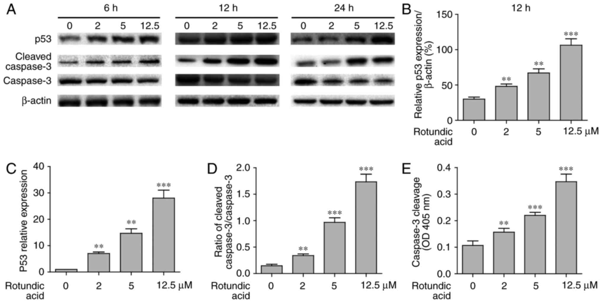 Nan ML, Wang X, Li HJ, Yu DH, Sun WY, Xu HM, He YF and Zhao QC: Rotundic acid induces Cas3‑MCF‑7 cell apoptosis through the p53 pathway. Oncol Lett 17: 630-637, 2019.
