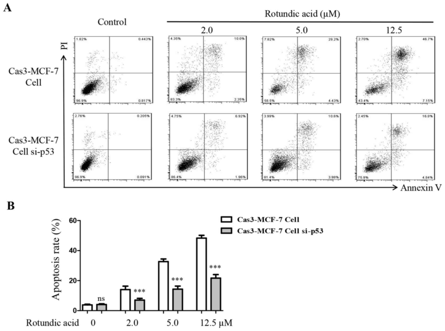Rotundic acid induces Cas3‑MCF‑7 cell apoptosis through the p53 pathway