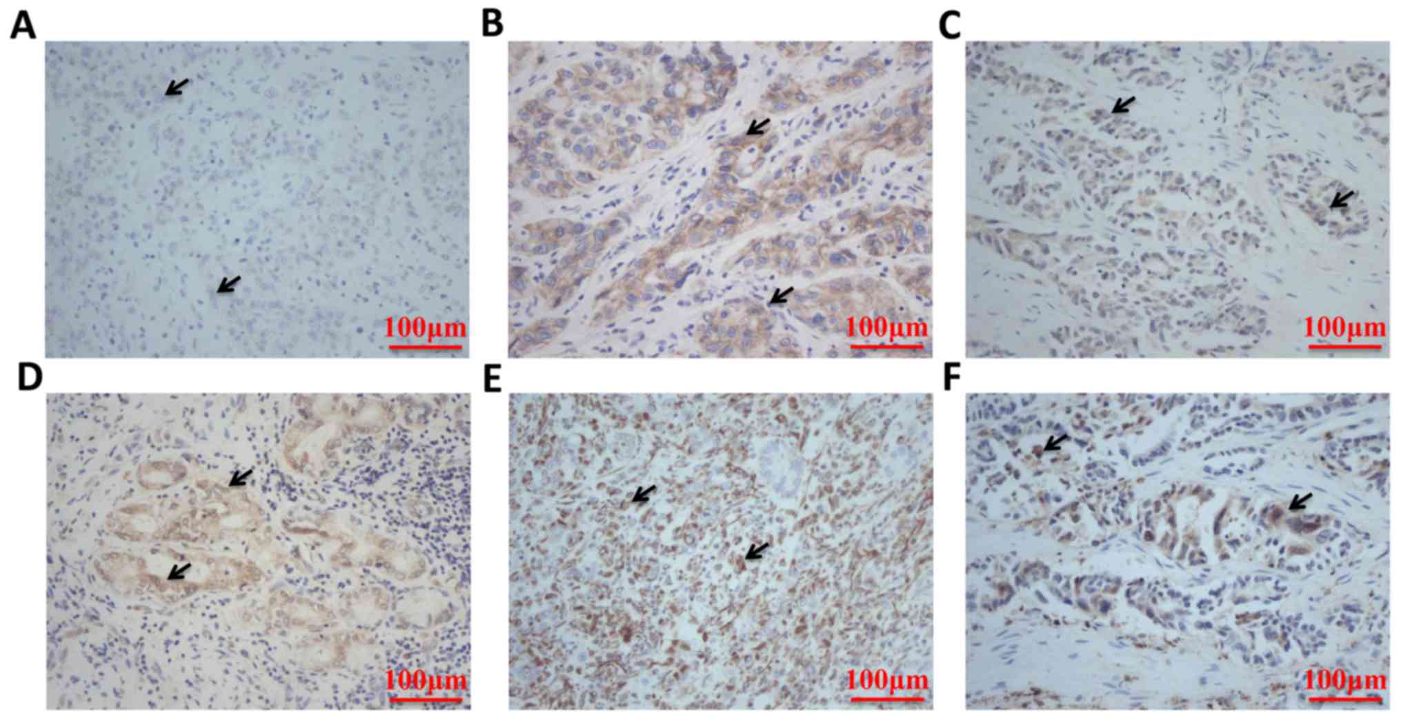 Numerous EMT-associated proteins have been suggested to be associated with tumor progression in ICC (15–19). However, to the best of our knowledge, no previous study has been performed to evaluate the EMT process in ICC through the measurement of a large number of EMT-associated markers.