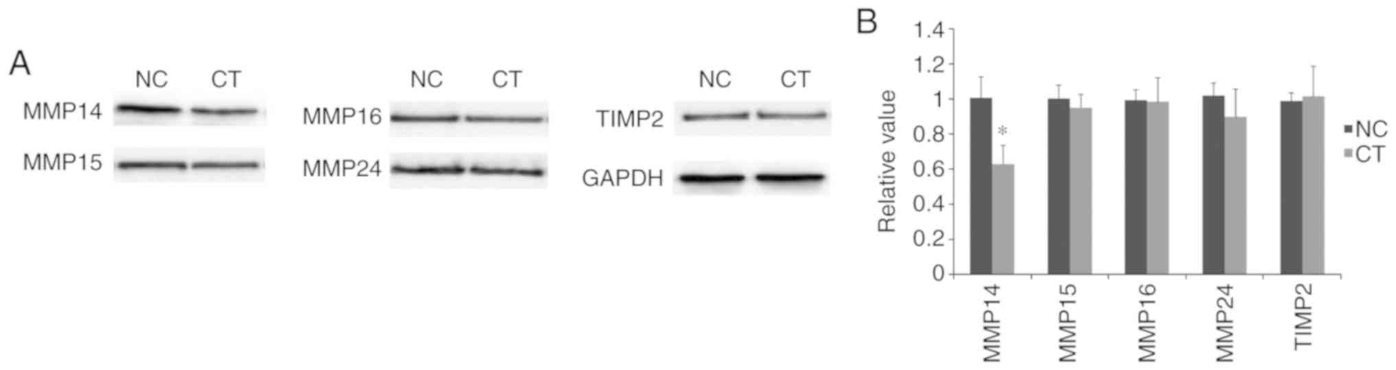 targeting MMP 14. Oncol Rep. 30:1398–1404. 2013. View Article : Google Scholar : PubMed/NCBI
