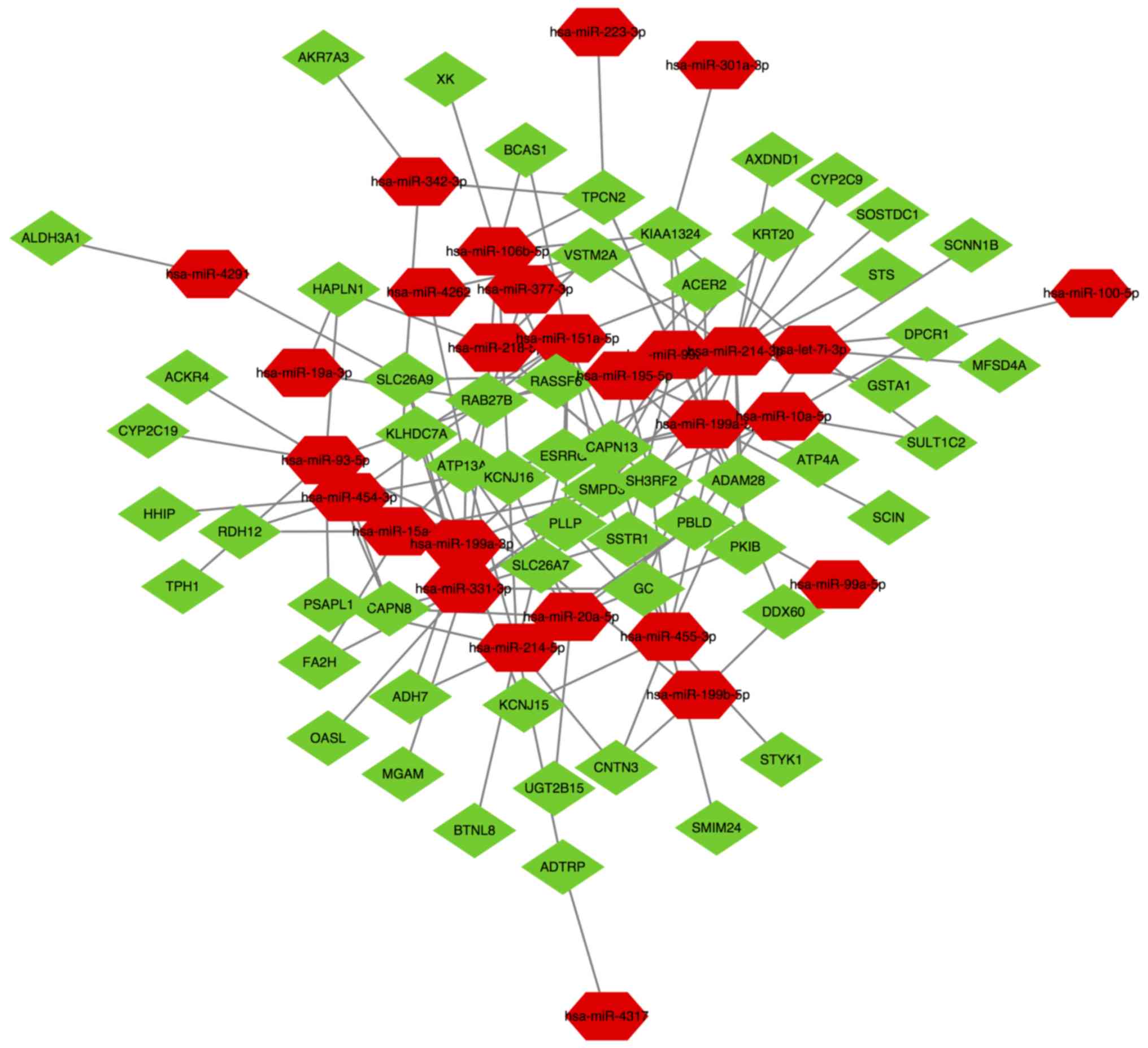 Identification of the lncRNA‑miRNA‑mRNA network associated with gastric cancer via integrated bioinformatics analysis