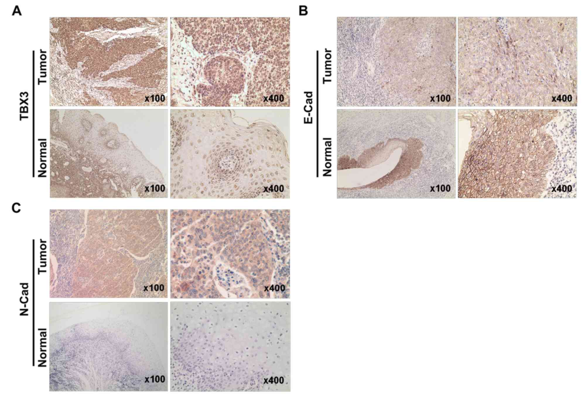 Song YX, Xing YN, Huang JY, Zhang JY, Xu H and Xu YY: Tbx3