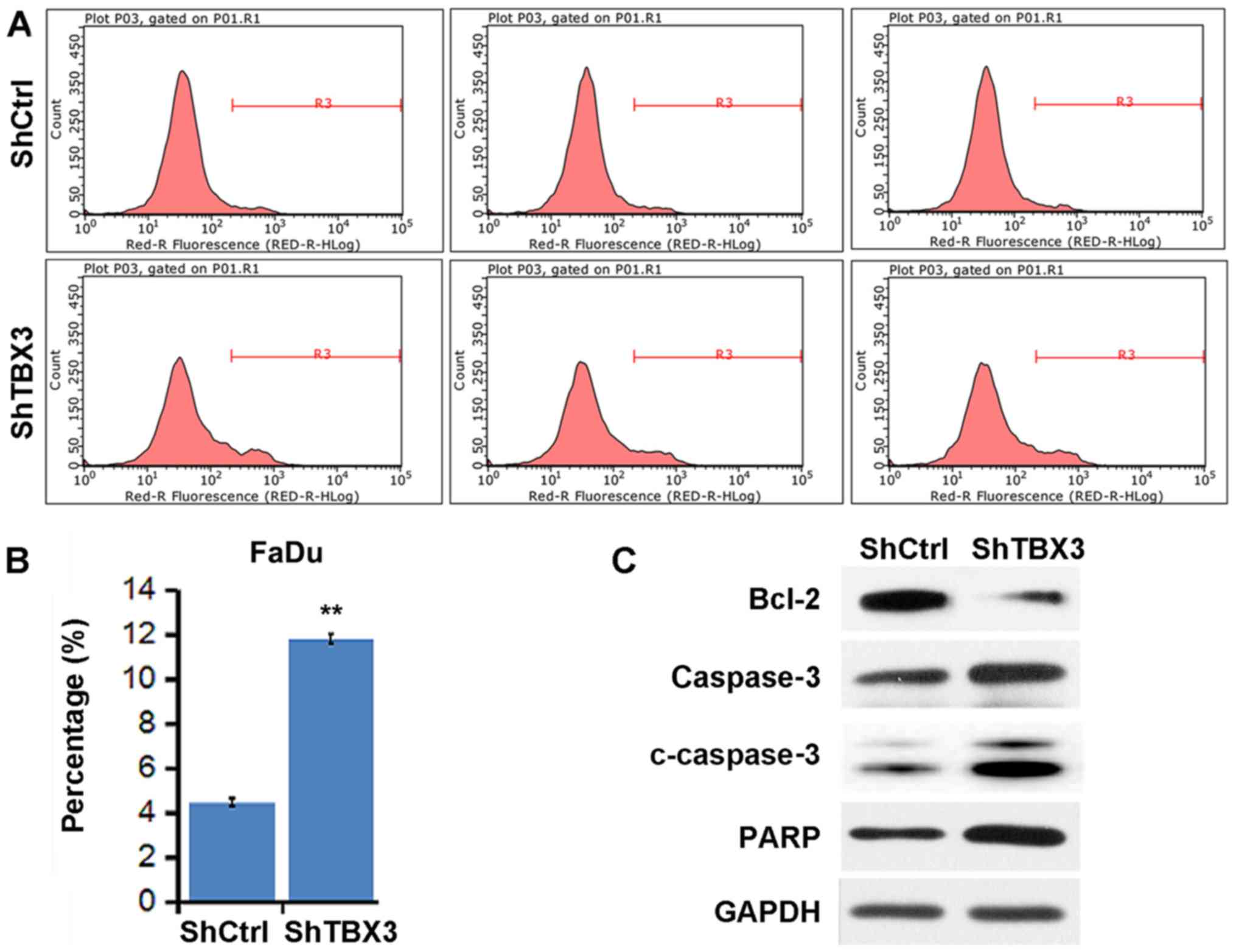 S, Zhao Z, Yang J and Zhao L: TBX3 promotes proliferation of