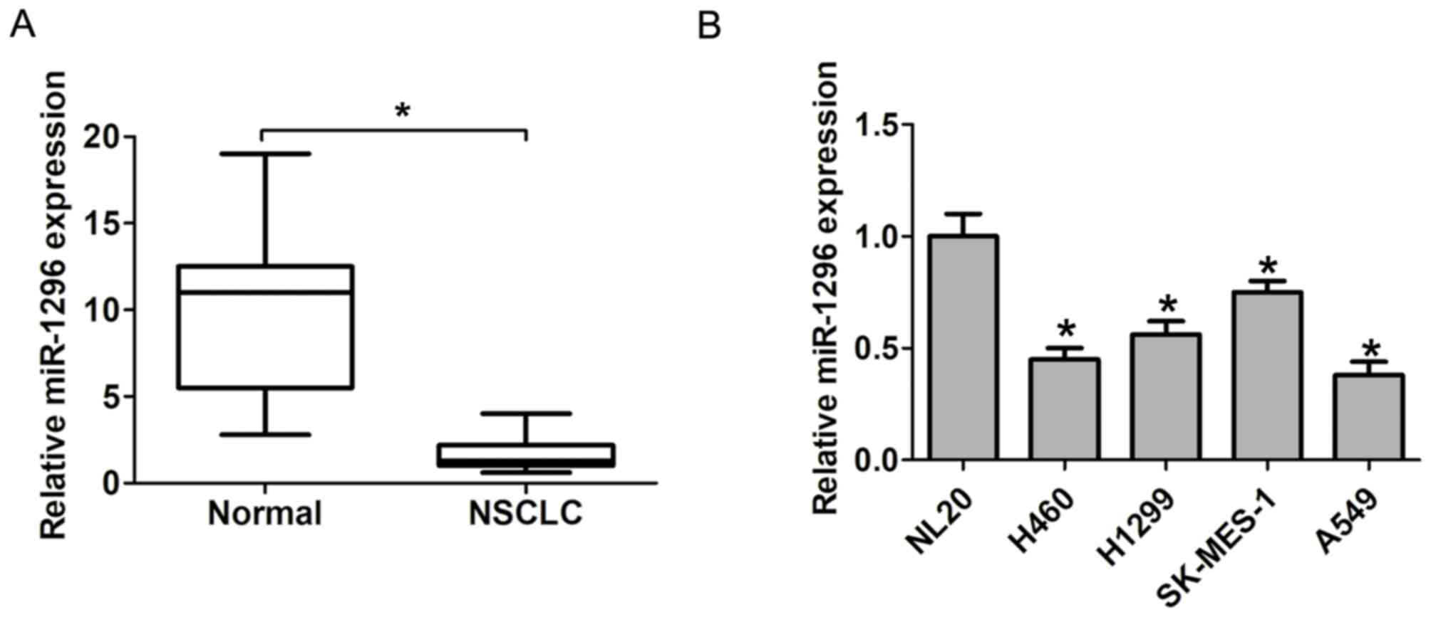 Z, Zhang L, Zhang H, Liu P, Zhu W and Zhu Y: miR-1296-5p decreases
