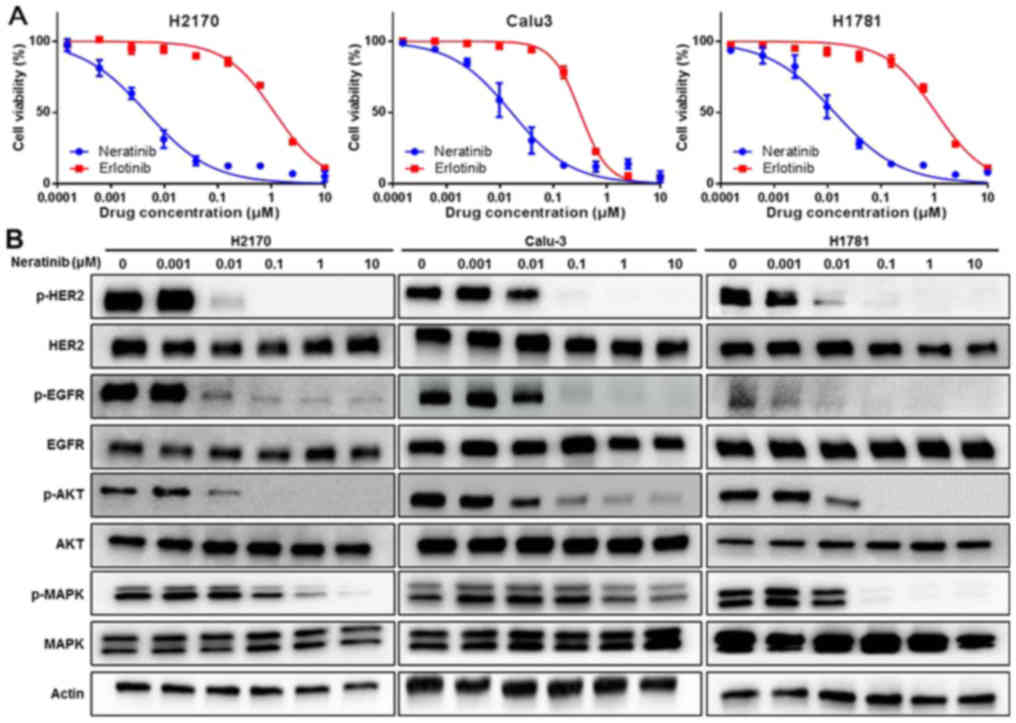 Anti‑tumor effect of neratinib against lung cancer cells harboring HER2 oncogene alterations